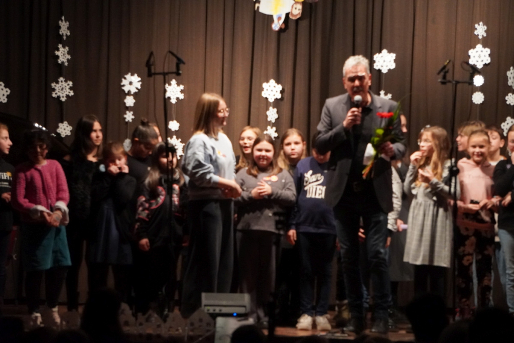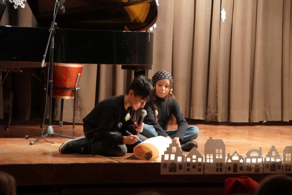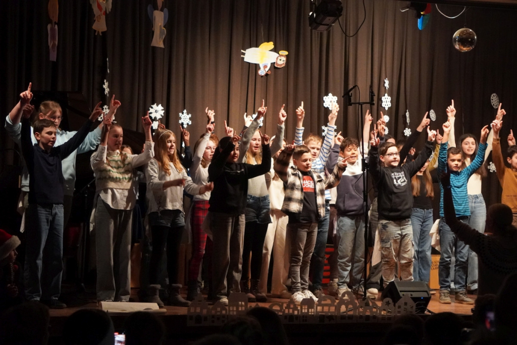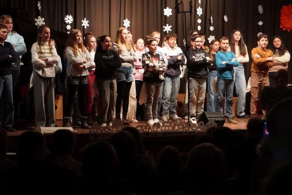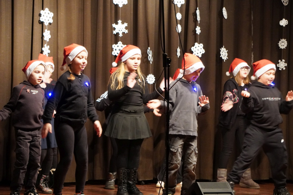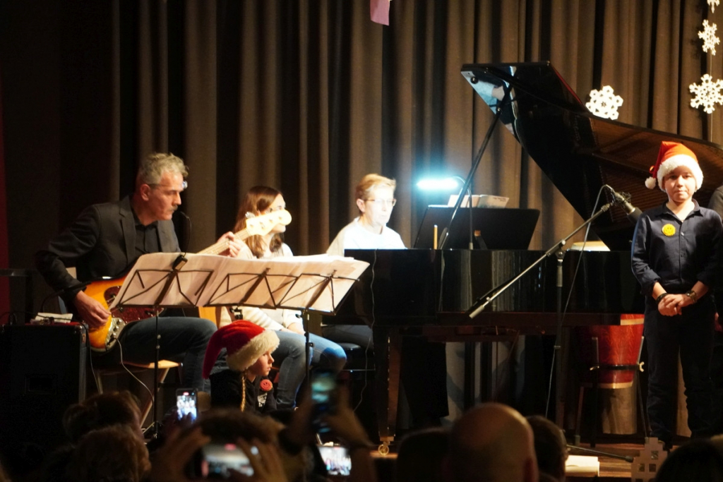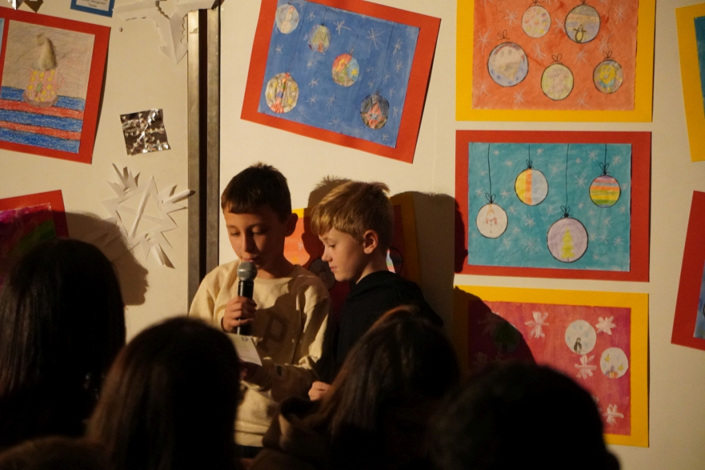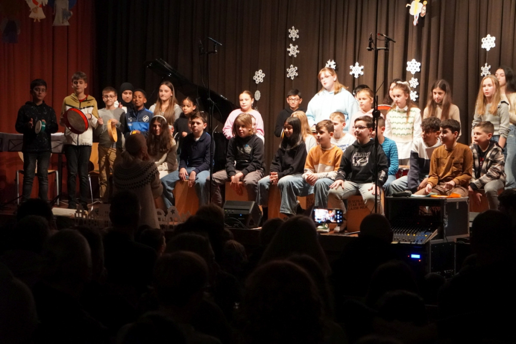 Selbstgemacht war an diesem wunderbaren Abend alles: Die musikalischen Beiträge Klassen 3 bis 5, die Tanzchoreografie der Klasse 3b, die Kunstwerke der Klassen 3a, 3b und 4a, die Weihnachtskantate der beiden Chöre wie auch die Moderation unserer beiden Profi-Ansager. Und siehe da: Die Begeisterung der Eltern war dann auch tatsächlich so groß, wie man sich das bei einer echten Bescherung vorstellt.