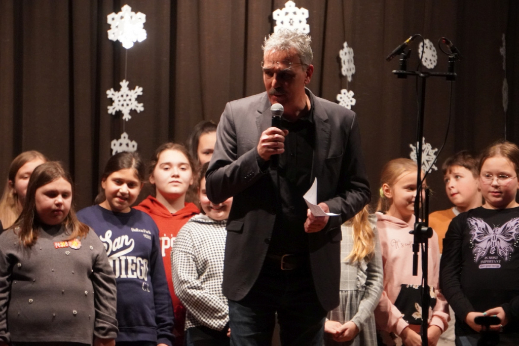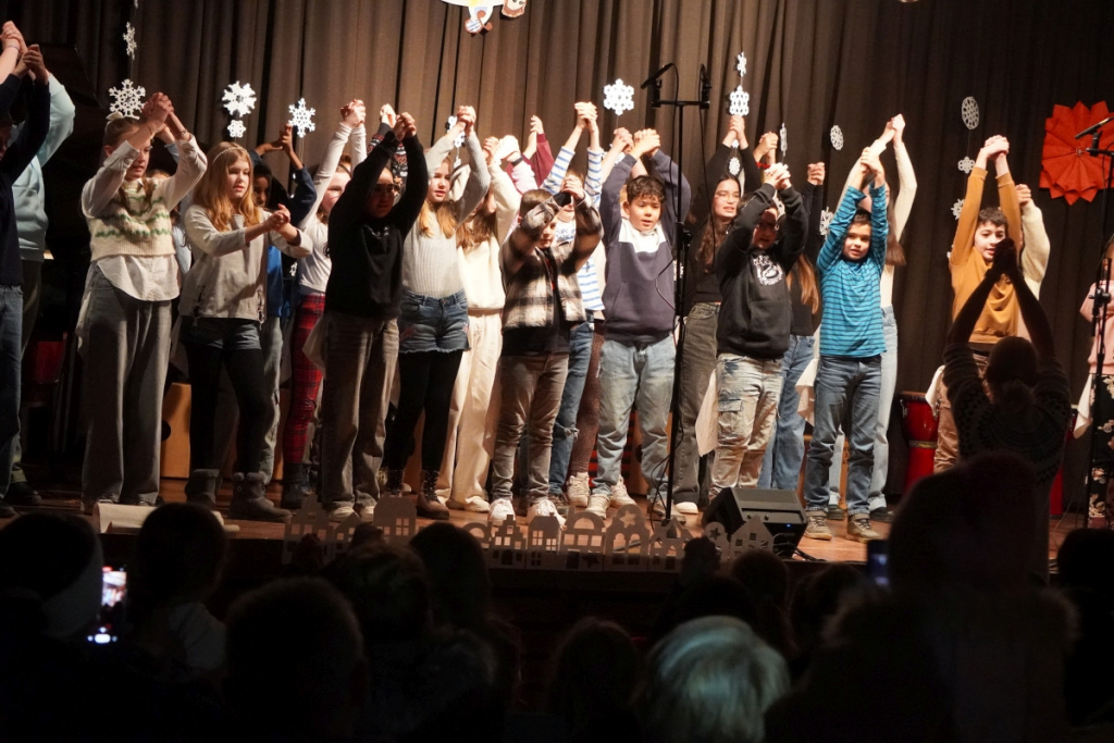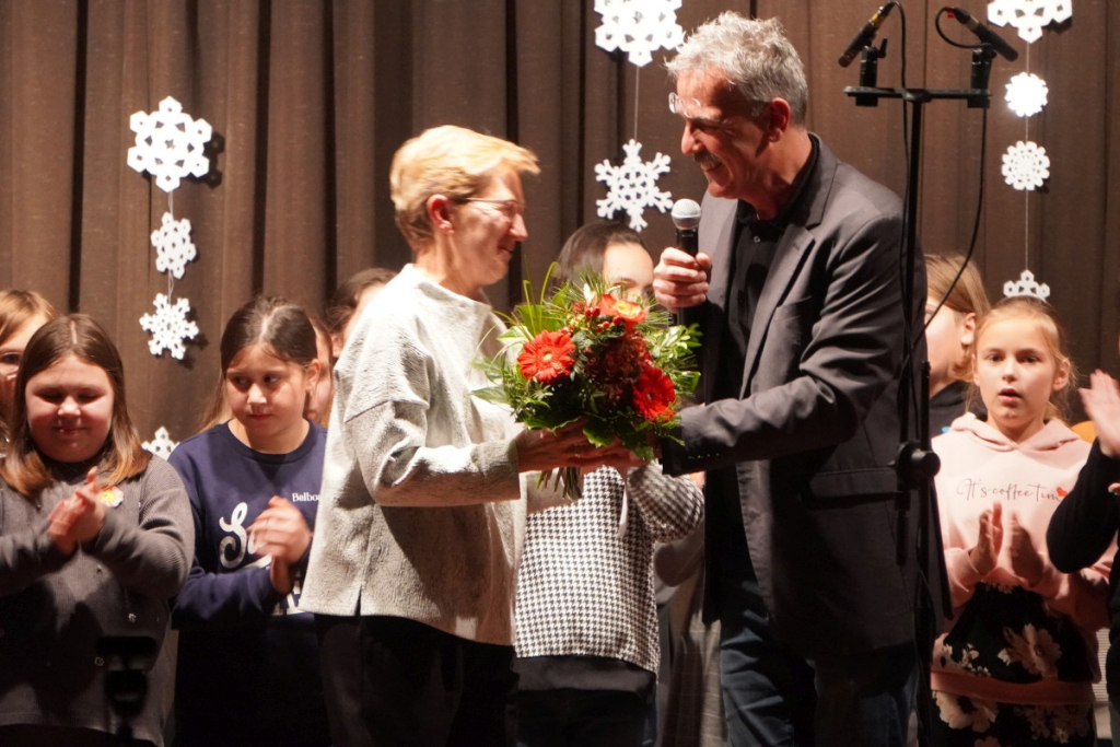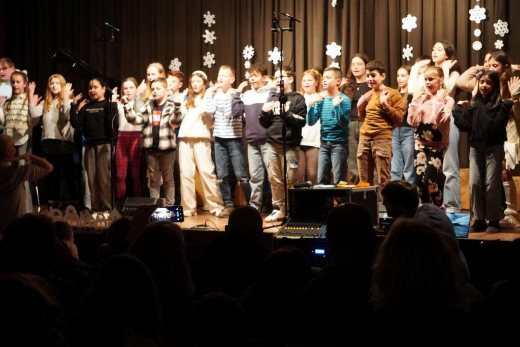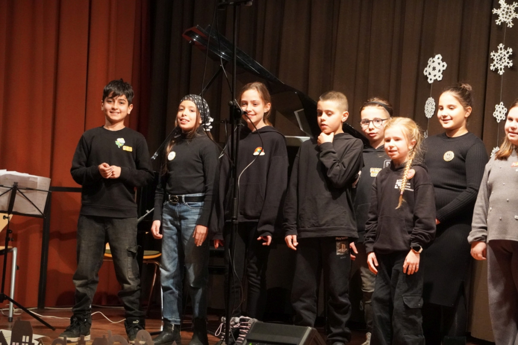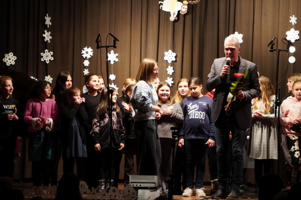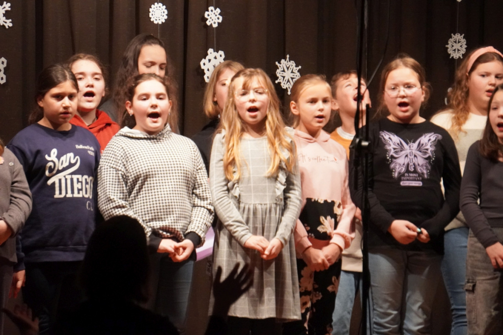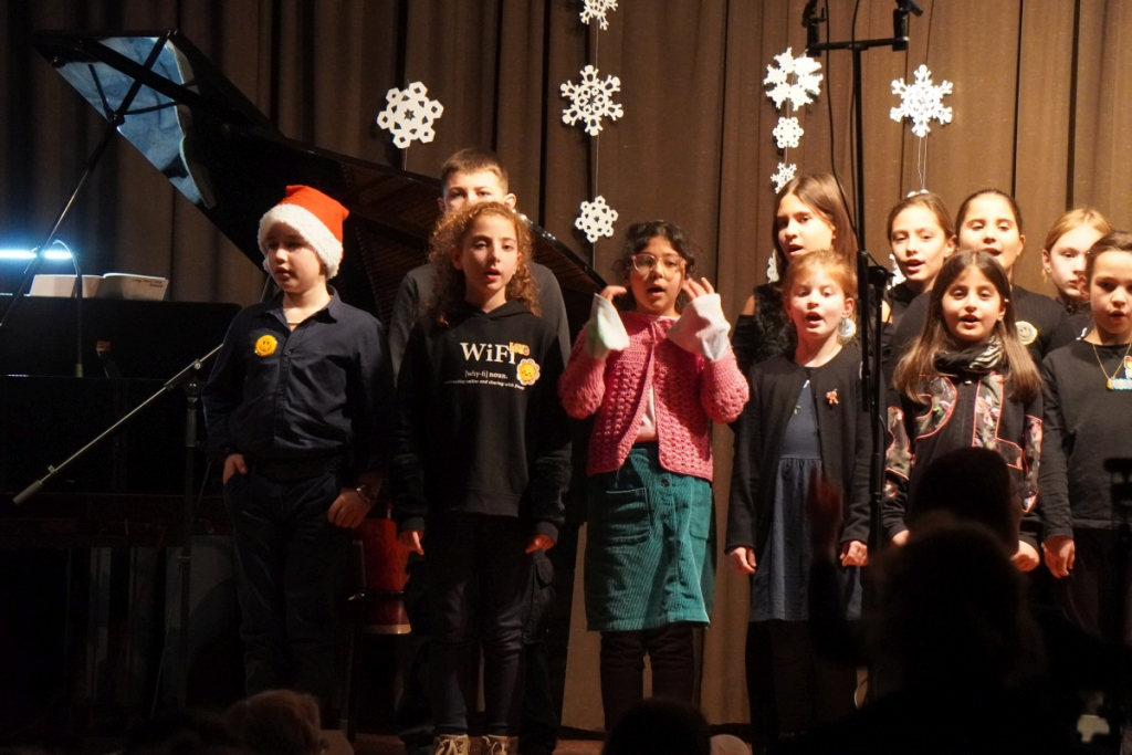 Selbstgemacht war an diesem wunderbaren Abend alles: Die musikalischen Beiträge Klassen 3 bis 5, die Tanzchoreografie der Klasse 3b, die Kunstwerke der Klassen 3a, 3b und 4a, die Weihnachtskantate der beiden Chöre wie auch die Moderation unserer beiden Profi-Ansager. Und siehe da: Die Begeisterung der Eltern war dann auch tatsächlich so groß, wie man sich das bei einer echten Bescherung vorstellt.