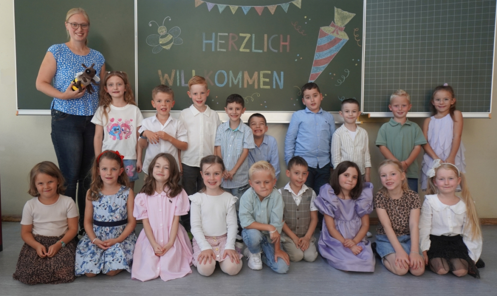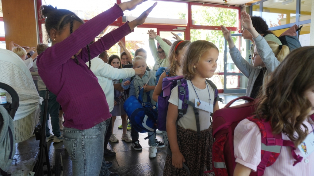 Nach der offiziellen Feier durften die Kinder endlich ihre erste Unterrichtsstunde im neuen Klassenzimmer erleben – begleitet von ihren Klassenlehrerinnen. Währenddessen warteten die Eltern bei Kaffee und Kuchen, den die Eltern der Zweitklässler liebevoll vorbereitet hatten.