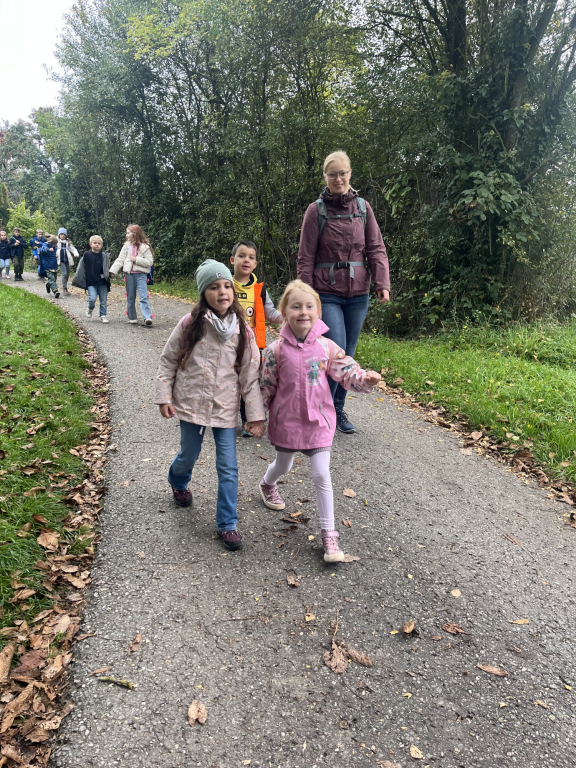 Am vergangenen Dienstag war es endlich soweit: Die ersten und zweiten Klassen unserer Grundschule haben sich voller Vorfreude auf den großen Wandertag gemacht. Gemeinsam ging es direkt los – und schon nach wenigen Minuten führte uns ein kleiner Umweg auf spannende, unbekannte Wege. Das Wetter spielte wunderbar mit – die Sonne schien und die Kinder waren bester Laune.