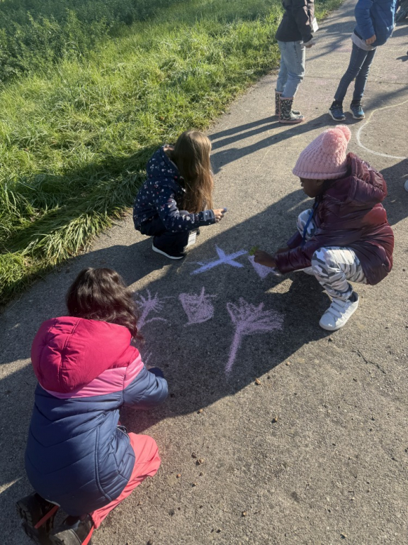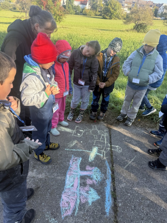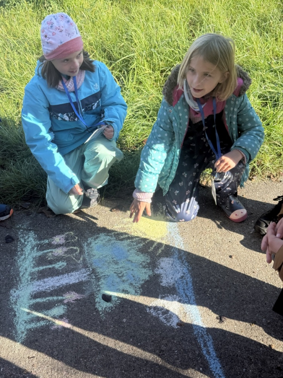Was für ein großartiger Auftakt! Bei strahlendem Sonnenschein starteten die Klassen 2a und 2b ihr neues Streuobstwiesen-Projekt. Gemeinsam mit Frau Raus machten sich die Kinder voller Entdeckerfreude auf den Weg ins Grüne. Auf der Wiese gab es viel zu staunen: Welche Tiere und Pflanzen leben hier eigentlich? Mit bunter Kreide wurden die Ideen und Beobachtungen gleich kreativ auf den Weg gemalt. Außerdem durften die Kinder messen, wie viel Abstand zwischen den Obstbäumen liegt – gar nicht so einfach, aber sehr spannend!