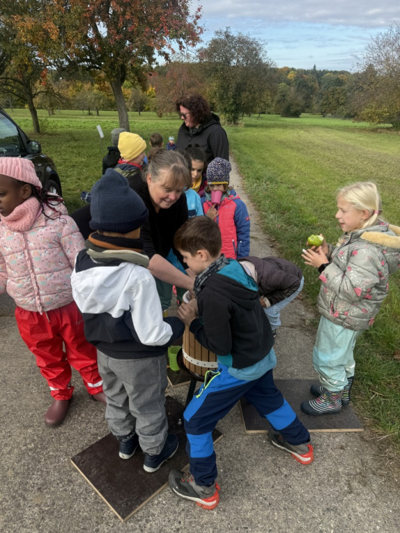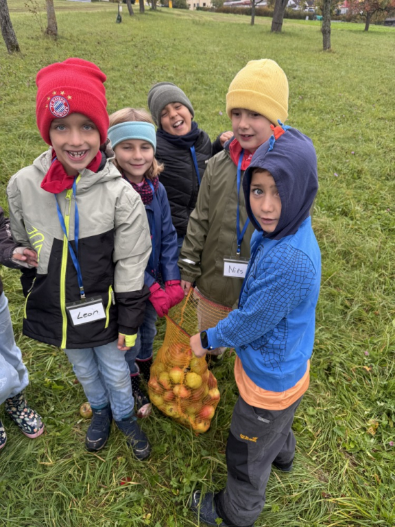 Apfelsaft selbst gemacht – die Zweitklässler auf der Streuobstwiese Vergangene Woche besuchten die Zweitklässler die Streuobstwiese. Dort drehte sich alles um das Thema Apfel. Zunächst erfuhren die Kinder, was Fruchtzucker eigentlich ist, und verglichen den Zuckergehalt von Apfelsaft und Cola – schnell war klar, welches Getränk gesünder ist! Anschließend ging es ans Werk: Mit viel Freude sammelten die Kinder Äpfel, pflückten sie direkt vom Baum und bereiteten sie weiter vor. Die Früchte wurden klein geschnitten, geschreddert und schließlich mit viel Muskelkraft gepresst. Zum Abschluss durfte natürlich auch probiert werden. Der selbst hergestellte Apfelsaft schmeckte herrlich süß, fruchtig und frisch! Die Kinder waren mit großer Freude dabei, hatten sichtlich Spaß und werden diesen besonderen Tag auf der Streuobstwiese sicher noch lange in guter Erinnerung behalten.