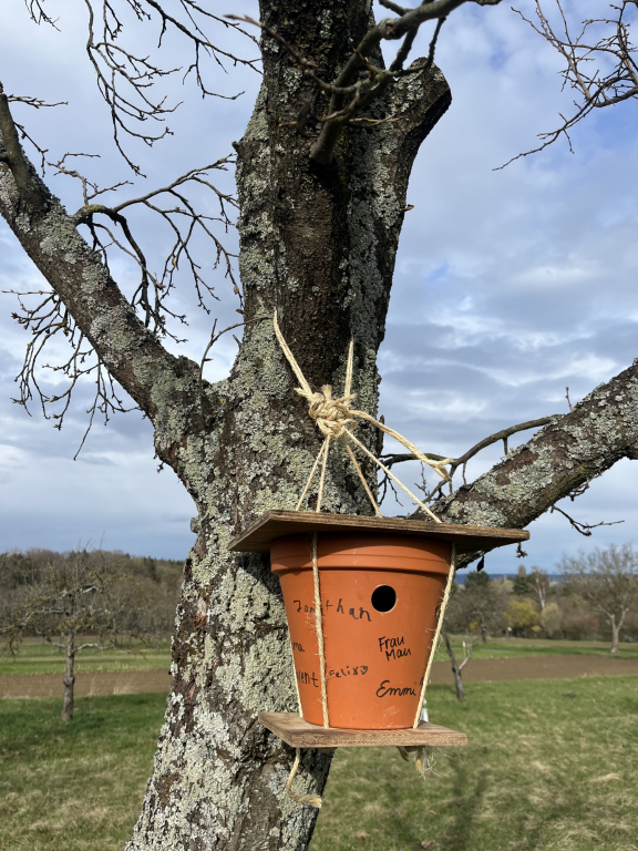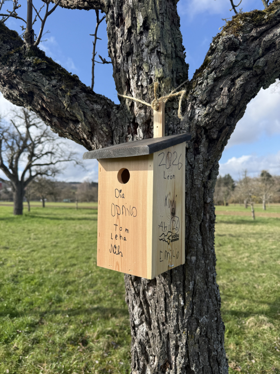Das zweite Highlight gab es für die 2a. Die Kinder haben Nistkästen gebaut und diese an gut geeigneten Stellen auf der Streuobstwiese platziert.