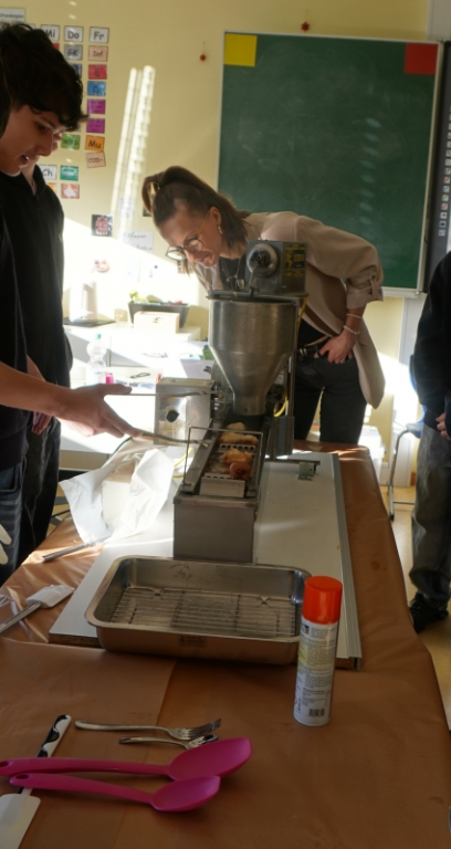 Natürlich war auch für das leibliche Wohl bestens gesorgt. Schülerinnen und Schüler boten Waffeln, Donuts, Crêpes sowie Getränke an. In der Mensa gab es außerdem Kaffee und Kuchen, organisiert vom Förderverein.