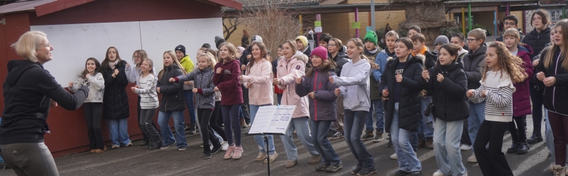 Für besondere Programmpunkte sorgten mehrere Vorführungen und Mitmachangebote. Der Chor der fünften Klassen begeisterte das Publikum im Schulhof mit seinem Auftritt.