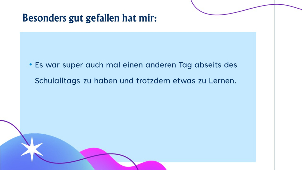 Die Ergebnisse zeigen eindrucksvoll die große Vielfalt und Kreativität der Jugendlichen: Von handwerklichen Arbeiten über künstlerische Projekte bis hin zu technischen und digitalen Umsetzungen war alles vertreten. Besonders hervorzuheben ist die starke Produktorientierung – am Ende standen greifbare, durchdachte und oft beeindruckende Ergebnisse, auf die die Schülerinnen und Schüler mit Recht stolz sein können.