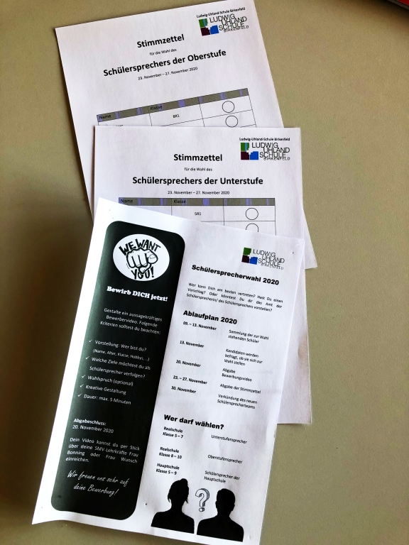 Wie viele andere Aktivitäten konnte auch die diesjährige Schülersprecherwahl coronabedingt nicht wie gewohnt in der großen Schulgemeinschaft durchgeführt werden. Da keine öffentliche Vorstellung möglich war, präsentierten alle Kandidaten in einem kurzen Video ihre Pläne und Ziele, sollten sie ins Amt gewählt werden. Hierbei machten alle Bewerber aus der Not eine Tugend und gestalteten die Videos sehr kreativ und aussagekräftig. Auch die Wahl selbst verlief nicht nach dem gewohnten Muster, statt in zu Wahlbüros umgewandelten Klassenzimmern, erfolgte die Stimmabgabe innerhalb der eigenen Klasse. Die Ergebnisse wurden anschließend an die SMV-Lehrerinnen übermittelt.