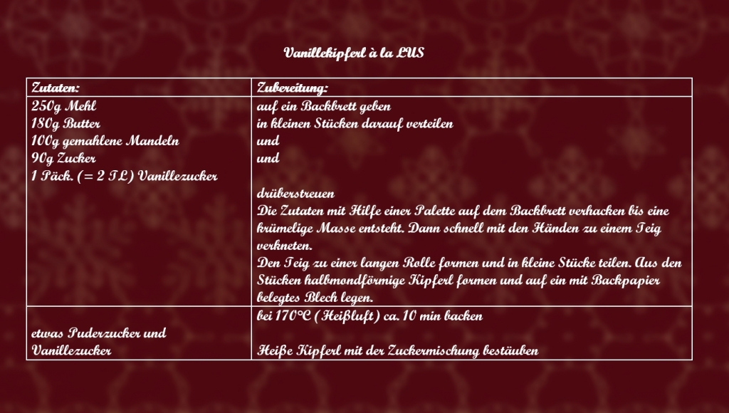 Nach der kurzen Öffnungszeit wird die Schulküche wird nun coronabedingt leider wieder ruhen müssen. Für alle die sich gerne zu Hause mit selbstgebackenem auf Weihnachten einstimmen möchten: Hier das Rezept von unseren Vanillekipferln.