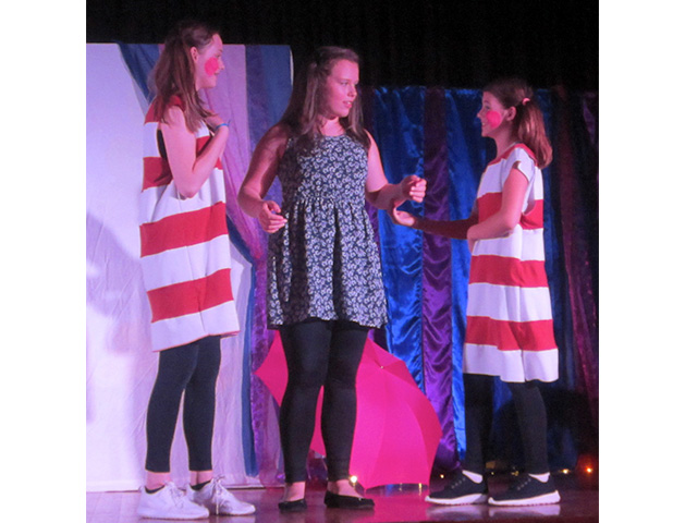 Der Reiz dieses Theaterstücks lag für die Mädchen der Klassen 5 – 8 darin, das Publikum zu verzaubern, mit Effekten zu überraschen und in sehr überzogene Rollen zu schlüpfen.