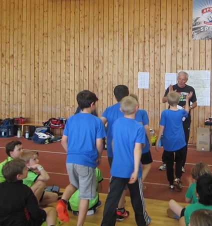 Am Montag, 9. Mai fuhren Tim Herrigel und Petra Hildebrand mit Emirhan Bayrak, Samet Güzelordu, Lasse Imhof, Franz Ladenburger und Noah Lutz um 8.45 Uhr los. Nach fast zweistündiger Fahrt wurden die Zimmer bezogen und dann die Sportschule erkundet. Um 12.00 Uhr gab es ein echtes schwäbisches Mittagessen - Maultaschen in mehreren Variationen - wobei man zum ersten Mal auf die anderen sieben Mannschaften traf. Die offizielle Begrüßung durch das Lehrgangsteam Günther Kreutzer und Siegfried Schweiss war dann um 13.30 Uhr in der Trainingshalle. Danach folgte eine gemeinsame Erwärmung, bei der die Teilnehmer sich bei verschiedenen Spielen und Übungen untereinander besser kennenlernten. Nach anfänglichen Hemmungen entstanden schnell die ersten Bekanntschaften und so hatte jedes Kind immer jemanden zum Spielen. Beim Einspielen wurden die Kinder von Siegfried Schweiss und Günther Kreutzer unterstützt und manche Schläge korrigiert.