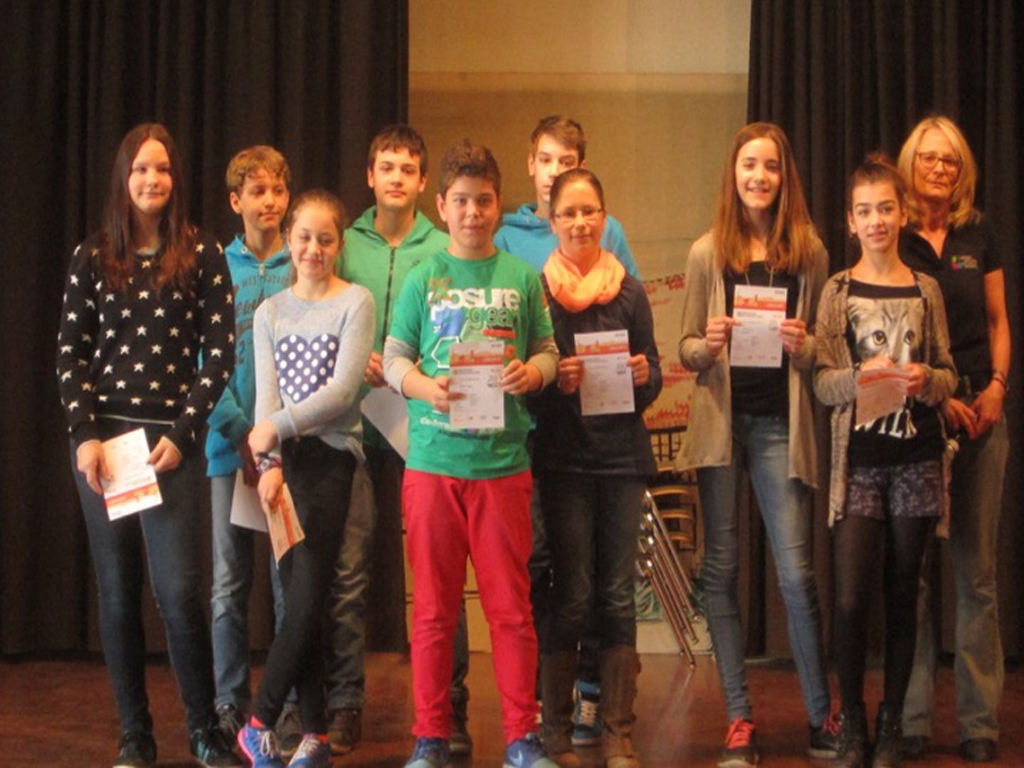 Klasse 7R2: Monique Hornschuh, Melina Engelmann, Lukas Süsser, Lars Rupp, Valerio De Caro