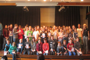 Letzte Woche war es dann endlich soweit. In einer kleinen Feierstunde konnten die Sportlehrkräfte 160 Schülersportabzeichen und die dazugehörigen Urkunden verleihen. Mit dieser beachtlichen Anzahl an Sportabzeichen führt die Ludwig-Uhland-Schule im Jahr 2014 wieder die Rangliste des Sportkreises Pforzheim an. Welchen Platz wir im Sportbund Nordbaden belegen, erfahren wir leider erst in ein paar Wochen.