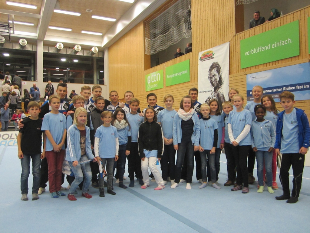 Auch wenn der Wettkampf eine einseitige Sache war - 75 : 11 lautete der Punktestand nach Wettkampfende  -  waren unsere Kinder mit Begeisterung dabei und bejubelten die Turner lautstark.