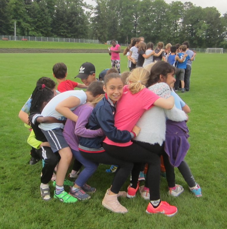 Noch bei Nebel richteten die Sportlehrkräfte am frühen Morgen zusammen mit Herrn Roth die Sportstätten her, während die Grundschüler sich zu Unterrichtsbeginn mit ihren Lehrerinnen und Lehrern im Klassenzimmer trafen und dann zum Erlachstadion marschierten. Dort wurden inzwischen schon die Helfer aus der Elternschaft in ihre Aufgaben als Kampfrichter und Riegenbegleitung eingewiesen.