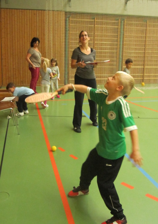 Wie schon im letzten Herbst fand auch dieses Schuljahr wieder ein Sporttag für alle Grundschüler in der Schwarzwaldhalle statt. Drei Schulstunden lang konnten zunächst die Erst- und Zweitklässler und nach der großen Pause die Dritt- und Viertklässler ihre Koordinationsfähkeiten unter Beweis stellen und diese an acht verschiedenen Stationen üben. Da manche Weiten und Zeiten auch für das Deutsche Sportabzeichen relevant waren, erhielt jeder Teilnehmer eine Laufkarte, die von den Helfern an den Stationen ausgefüllt wurde. Am Ende der jeweiligen Veranstaltung gab es für alle Kinder eine Teilnahmeurkunde.