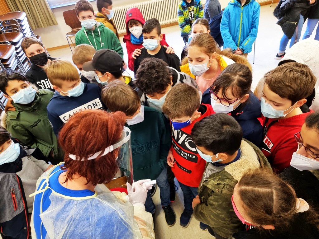 Am Mittwoch, den 24. März war es nun endlich soweit. Die Klassen 5a und 5R1 der LUS gingen mit ihren Klassenlehrkräften Vanessa Rädle und Stephan Paetzold zum ersten gemeinsamen Coronatest in die Teststation der Diakonie Birkenfeld. Nach der Besichtigung der Räumlichkeiten und einer Einführung in die Begriffe und Testgegebenheiten durften sich zuerst die beiden Klassenlehrkräfte testen lassen.