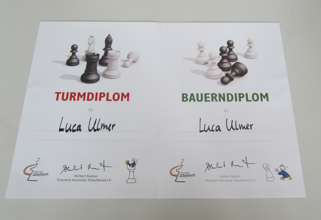In diesem Schuljahr konnte Tomislav Bodrozic, der Leiter der Schach-AG fünf Mal das Turmdiplom und drei Mal das Turmdiplom verleihen.