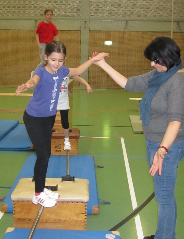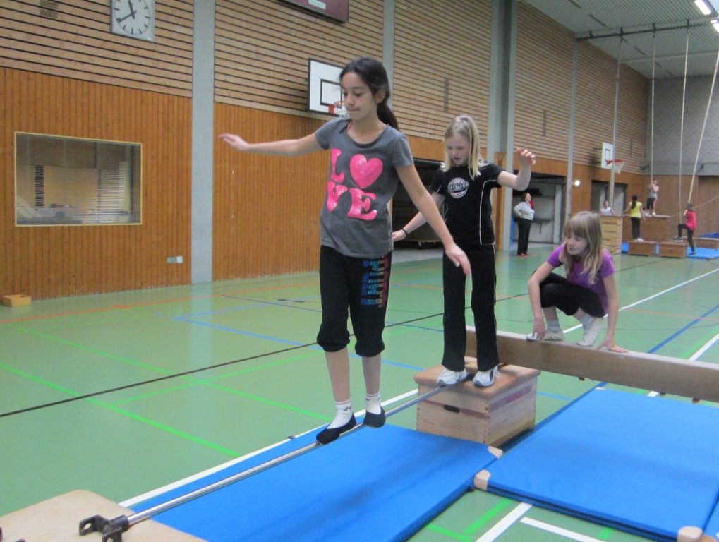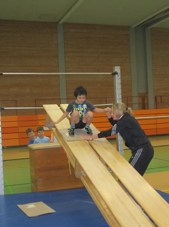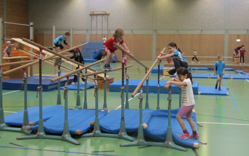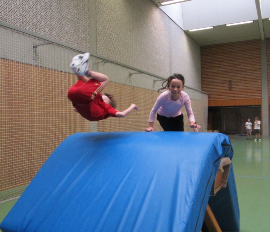 Schon seit 10 Jahren veranstaltet die Sportfachschaft für die Kinder der Grundschule kurz vor Weihnachten den Großgeräte-Sporttag. Jede Klasse hat zusammen mit ihrer Parallelklasse die Möglichkeit eine Stunde alle Großgeräte, die in den Geräteräumen der Schwarzwaldhalle zu finden, vor allem aber mit Matten zu sichern sind, auszuprobieren.