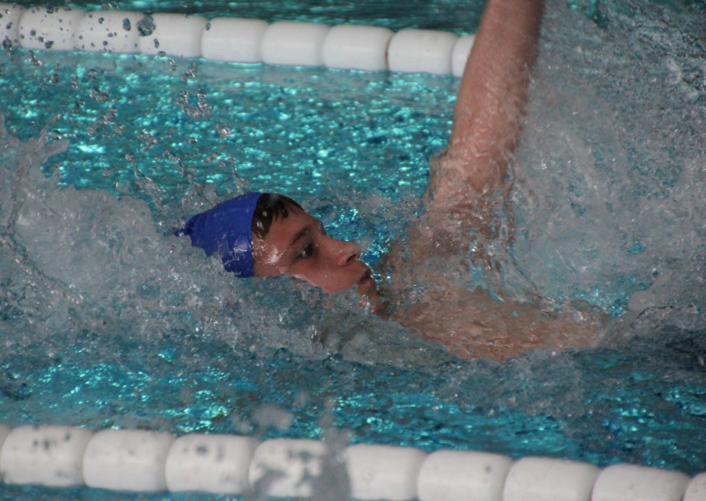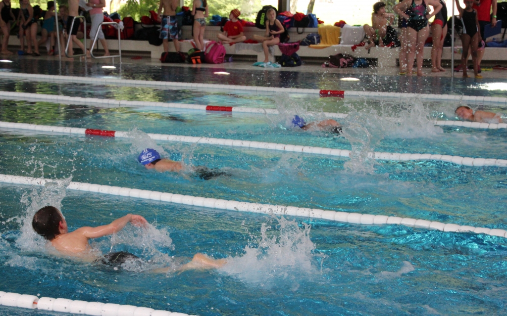 Abwechselnd mit den Läufen der Sekundarstufe schwammen die Grundschülerinnen und Grundschüler zuerst die 25 m Rückenkraul, dann die Freistilstrecke und danach eine Bahn Brust.