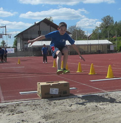 Nach Beendigung des Vierkampfs konnten sich alle Kinder eine Butterbrezel und eine Fanta bei den Raiffeisenbankvertretern aus Kieselbronn abholen. Und dann waren die 6x40 m Pendelstaffeln an der Reihe. Jeweils drei Mädchen und drei Jungen sprinteten unter Anfeuerung ihrer Klassenkameraden für ihre Schule um die Wette. Die Birkenfelder Kinder des Jahrgangs 2008 belegten in ihrer Altersklasse den zweiten und die des Jahrgangs 2009 sogar den ersten Platz. Bei der anschließenden Siegerehrung, bei der alle Teilnehmer eine Urkunde und einen kleinen Sachpreis erhielten, war dann der Jubel groß. Gleich drei Kinder der Ludwig-Uhland-Schule durften auf das Siegertreppchen klettern. Giulia Caroppo belegte bei den Mädchen des Jahrgangs 2009 den zweiten Platz, Silvan Keddi wurde im selben Jahrgang Dritter und Kerim Meier wurde bei den Jungen des Jahrgangs 2008 Zweiter. Bei den Einzelwertungen konnte Giulia bis auf den Heulerballwurf alle Disziplinen gewinnen, Kerim siegte bei den Hürden und wurde beim Heulerballwurf Zweiter. Silvan hingegen war in keiner Disziplin ganz vorne, dafür aber in allen vier Disziplinen auf den Plätzen 4 bis 6. Die Drei dürfen nun am 7. Juli zusammen mit den anderen Siegern als Enzkreisteam zum Badenfinale fahren. Aber auch die anderen Teilnehmer der Ludwig-Uhland-Schule schnitten hervorragend ab: