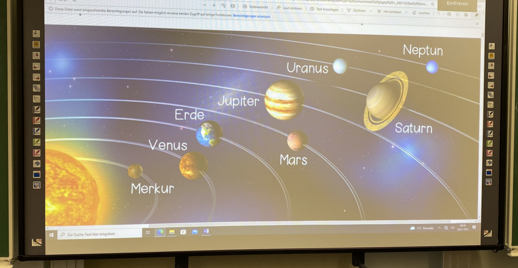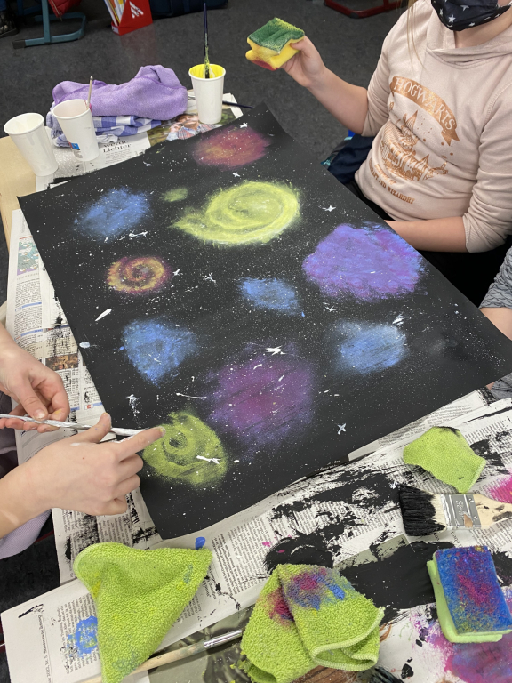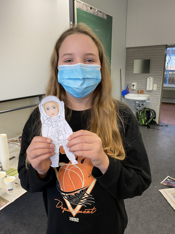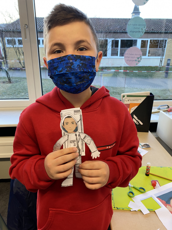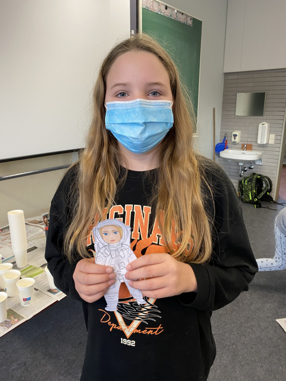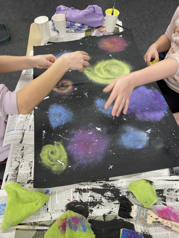 Was haben Geographie, Kunst und Medienbildung gemeinsam? Auf den ersten Blick: Nichts. Doch in einem fachübergreifenden Unterricht können wunderschöne Projekte entstehen. So auch in der 5R3. In den letzten Monaten beschäftigten sich die Schüler:innen im Fach Geographie mit den Planeten unseres Sonnensystems, unterschiedlichen Galaxien und dem Universum. Passend dazu wurde ein Kunstprojekt begonnen. In diesem starteten die Schüler:innen eine Expedition in ihre ganz eigene Galaxie. Die selbst gezeichneten Astronauten wurden mit persönlichen Avataren vervollständigt, die sie im Medienbildungsunterricht angefertigt hatten. Die Galaxien wurden mit Acrylfarben und unterschiedlichen Tupftechniken, die Planeten mit Wachs- oder Wasserfarben gestaltet.
