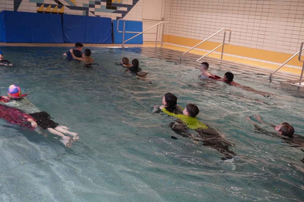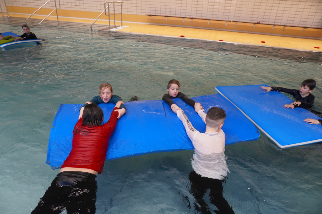 Auch die Fünftklässler hatten viel Spaß beim Schlafanzugschwimmen. Zusätzlich zu den Übungen zur Selbstrettung lernten sie ihre Mitschüler abzuschleppen.