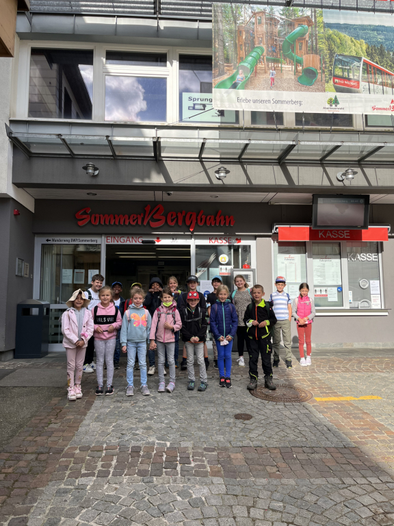 Wir sind sehr lange auf dem Spielplatz geblieben. Als wir dann leider gehen mussten, haben wir bemerkt, dass die Jacke einer Mitschülerin gefehlt hat. Aber wir hatten keine Zeit mehr, wir mussten schnell zu der Bergbahn laufen. Wir haben es gerade noch geschafft.