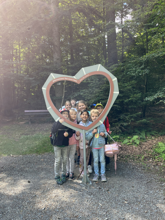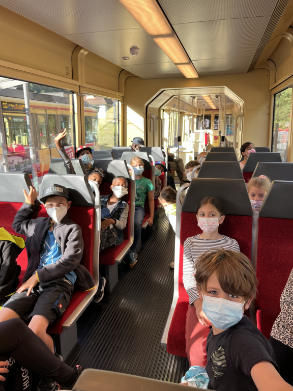 Als wir wieder unten waren, haben wir an einem Brunnen auf die Bahn gewartet. Als wir wieder in der Bahn waren, fuhren wir nach Birkenfeld. Von der Haltestelle aus liefen wir wieder in die Schule. An der Schule wurden wir dann abgeholt.