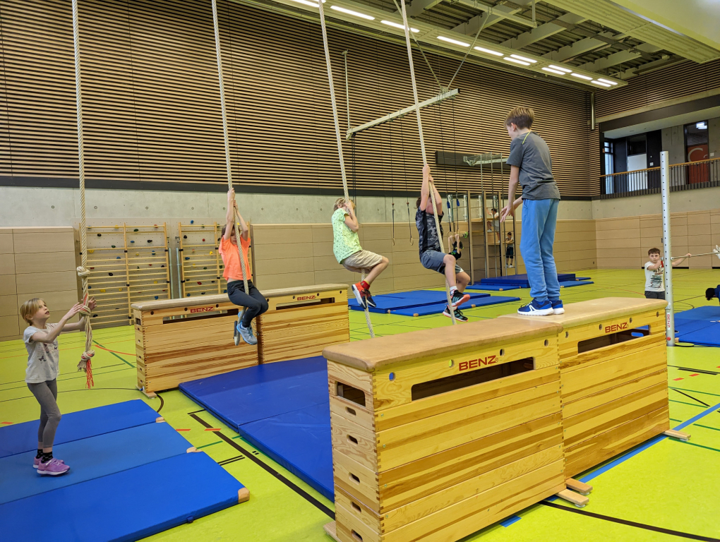 Die tolle Gerätelandschaft wurde dieses Mal von den beiden dritten Klassen zusammen mit den Sportlehrer*innen aufgebaut. Abgebaut und aufgeräumt wurden alle Geräte von der Klasse 4a.