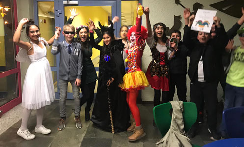 Das kann nur bedeuten, dass die LUS wieder ihre Pforten zur berühmten Faschingsdisco in der Aula öffnete. Die Gaumen der LUSler wurden an diesem Abend mit Pizzen von unserem heimischen Pizzaservice Ali Baba sowie mit leckeren Berlinern verwöhnt. Ein großes Dankeschön geht an Familie Prehn, die uns auch in diesem Jahr eine vielfältige Auswahl an Getränken zur Verfügung gestellt hat. Zudem erwartete die Besucher ein bunt geschmückter Saal mit selbstgebastelter Dekoration, mit der sich Frau Meisterzock mit ihren BK - Klassen selbst übertroffen hat. Ein weiteres Highlight war die Bekanntgabe der Sieger unseres Kostümwettbewerbs, den die Klasse 5a mit ihrer Klassenlehrerin Frau Tekinarslan gebührend feiern durfte. Allerdings überraschten auch viele andere Schülerinnen und Schüler sowie Lehrer an diesem Abend mit ihren kreativen Outfits.
