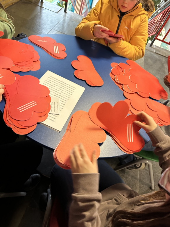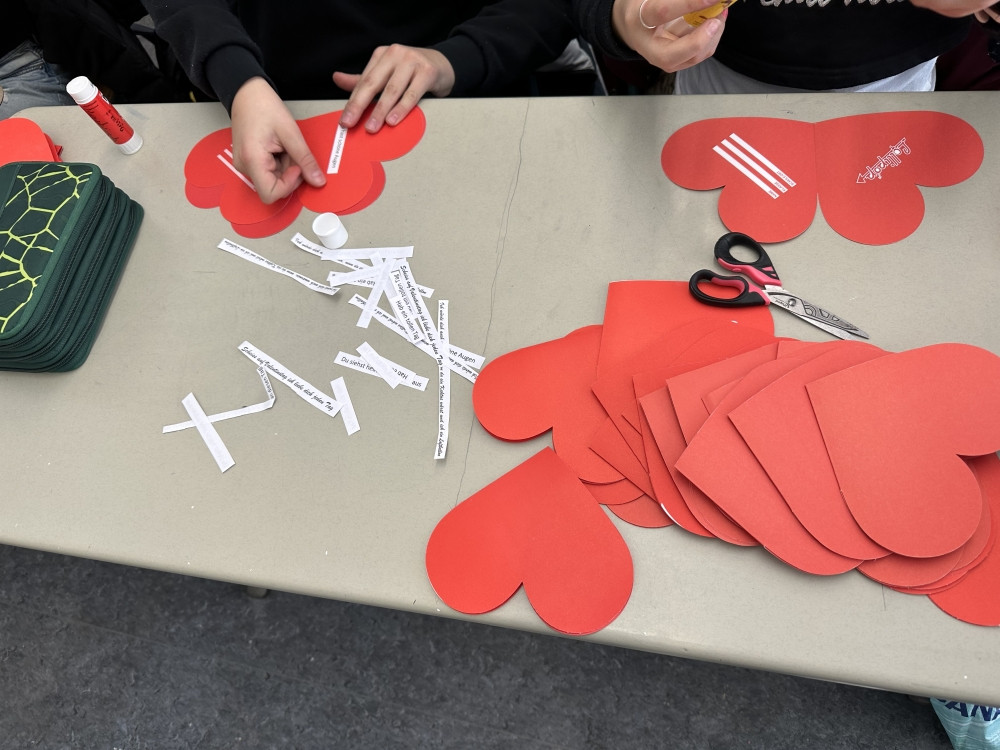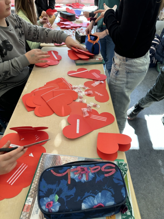 So entstand die Idee der „Komplimente-Herzen“. Wochenlang arbeiteten die Mitglieder an der Gestaltung und Ideenfindung. Ehe am Valentinstag über 500 rote Herzen, gefüllt mit Komplimenten und einer kleinen Süßigkeit, die Reise in alle Klassen der LUS antraten, um Freude zu verbreiten.