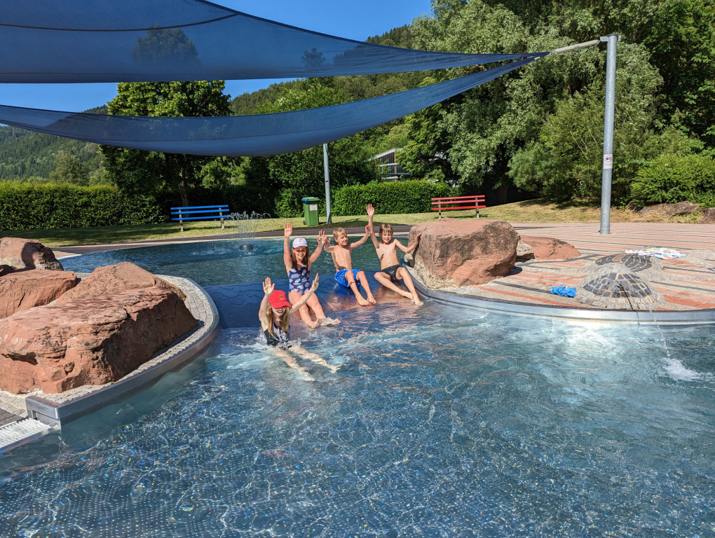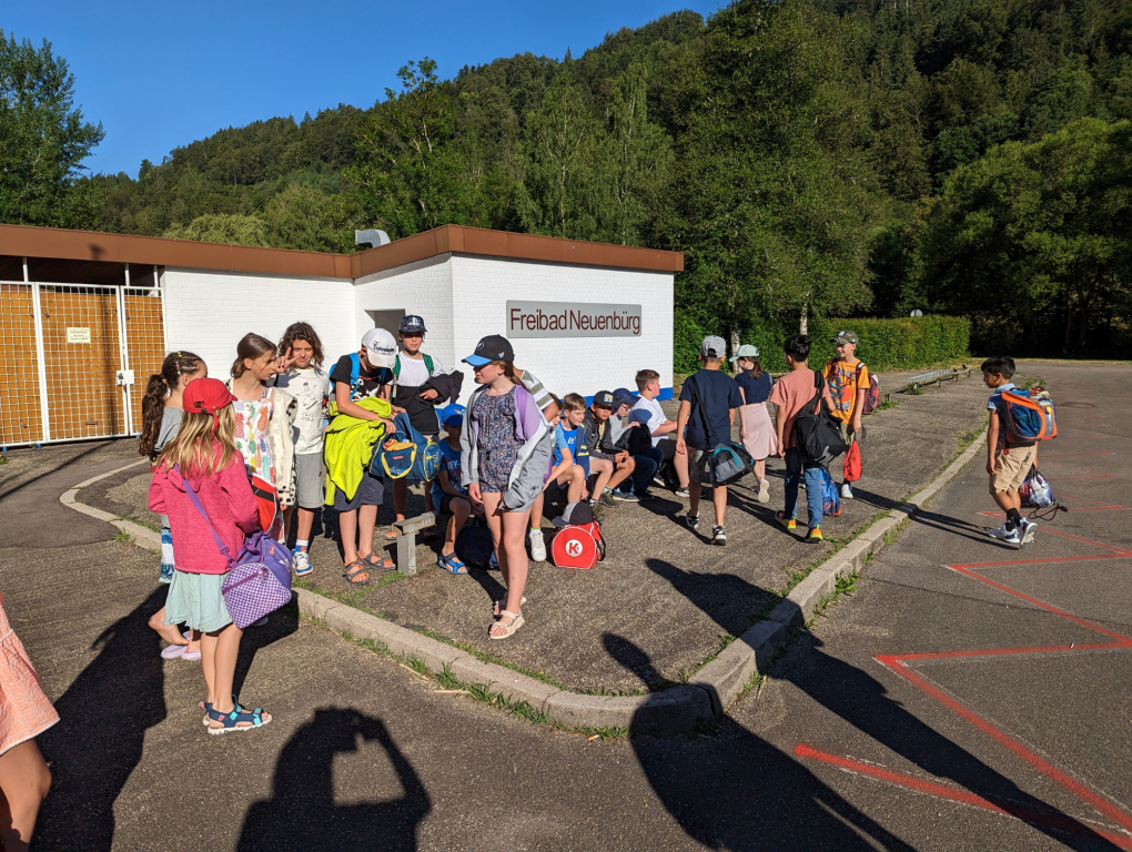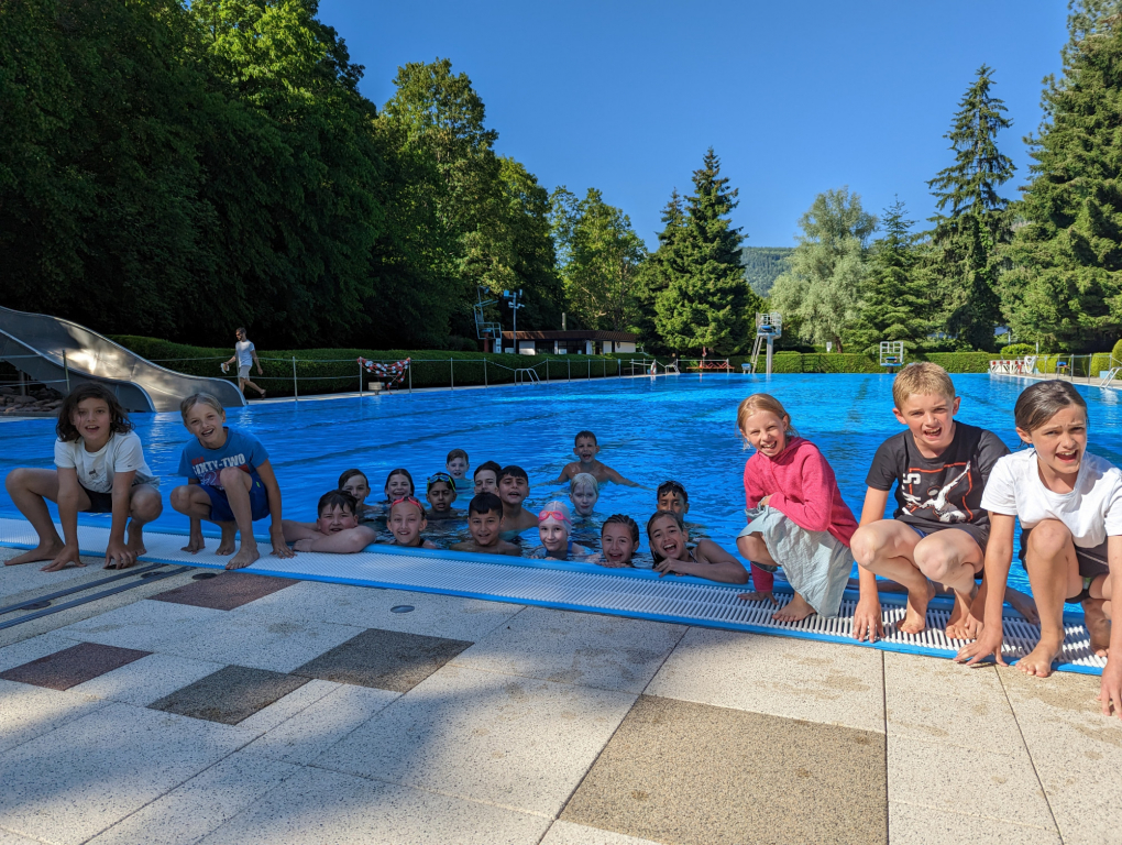 Einen ganzen Vormittag verbrachten die Kinder der 4. Klasse bei strahlendem Sonnenschein aber kaltem Nordostwind im Freibad Neuenbürg.