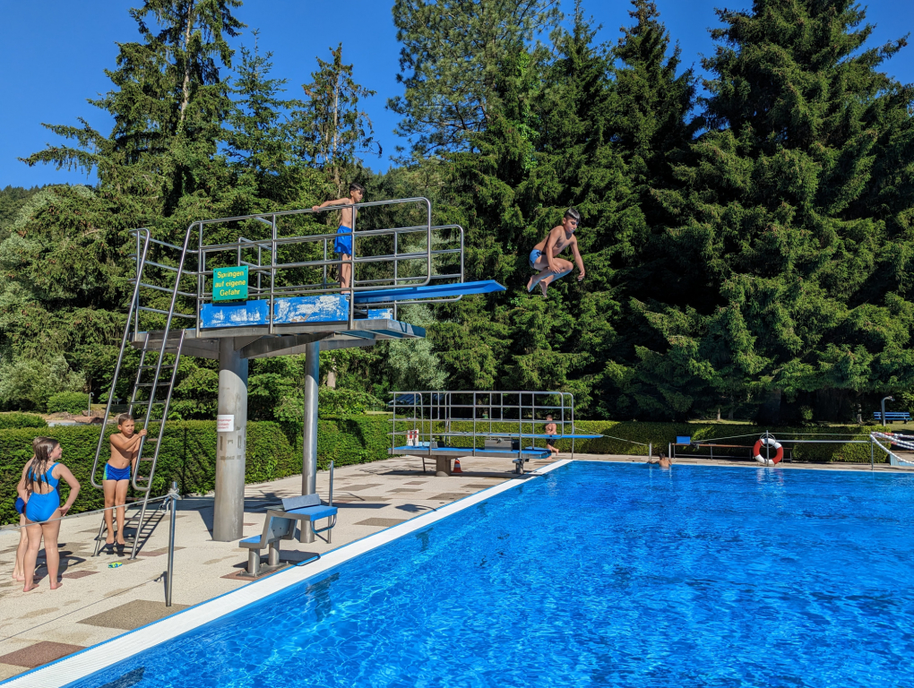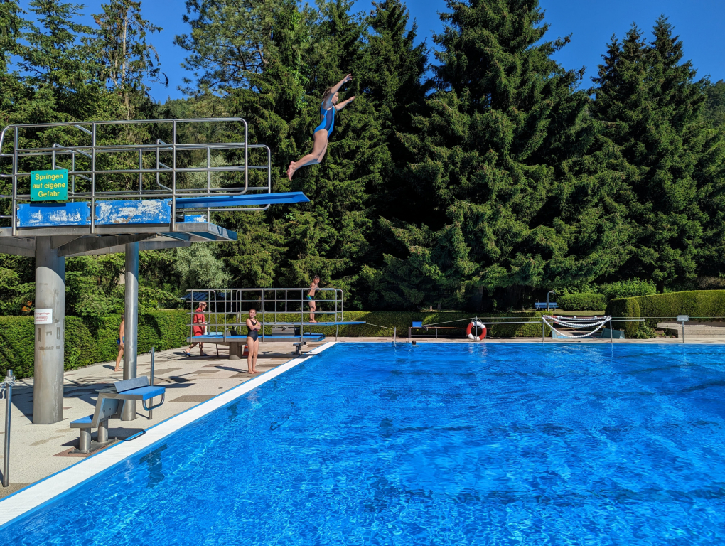 Für die meisten Kinder waren die Anforderungen der Schwimmabzeichen kein Problem. Das Ausdauerschwimmen und Streckentauchen hatte man ja auch schon oft im Lehrschwimmbecken der Schule geübt. Aber die Sprünge vom 1- bzw. 3m-Brett und das Heraufholen eines Ringes aus 2 m Tiefe erforderte bei einigen Kindern große Überwindung. Fast alle Schülerinnen und Schüler haben die Praxis mit Bravour gemeistert, sodass dann nur noch die Theorieprüfung bestanden werden musste.