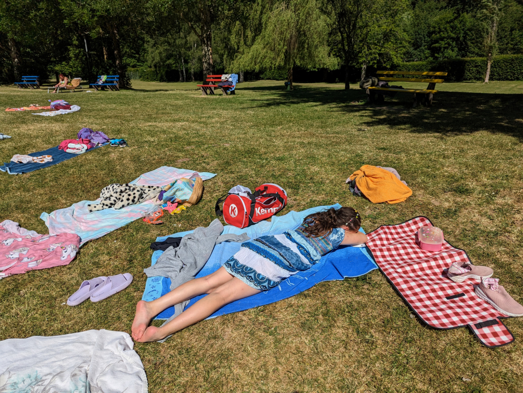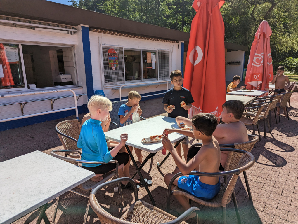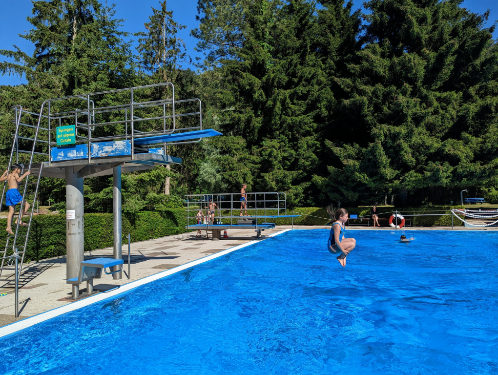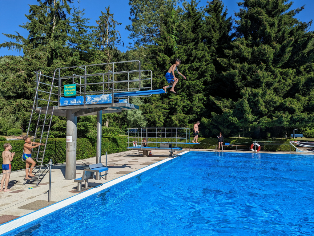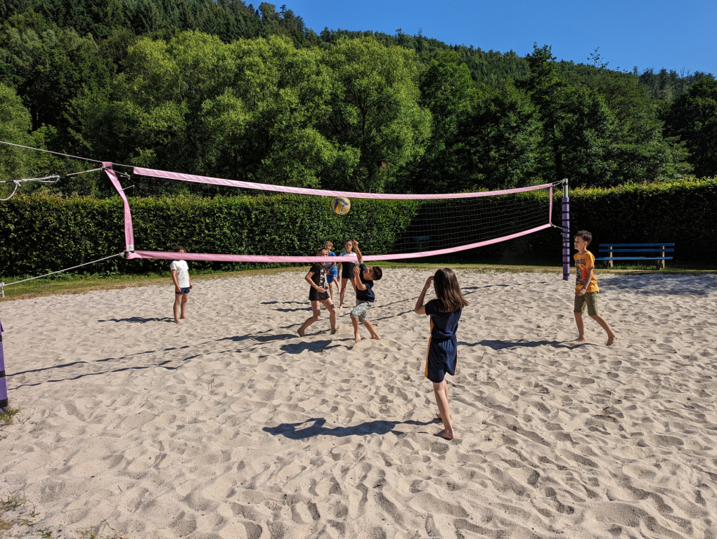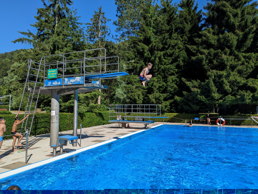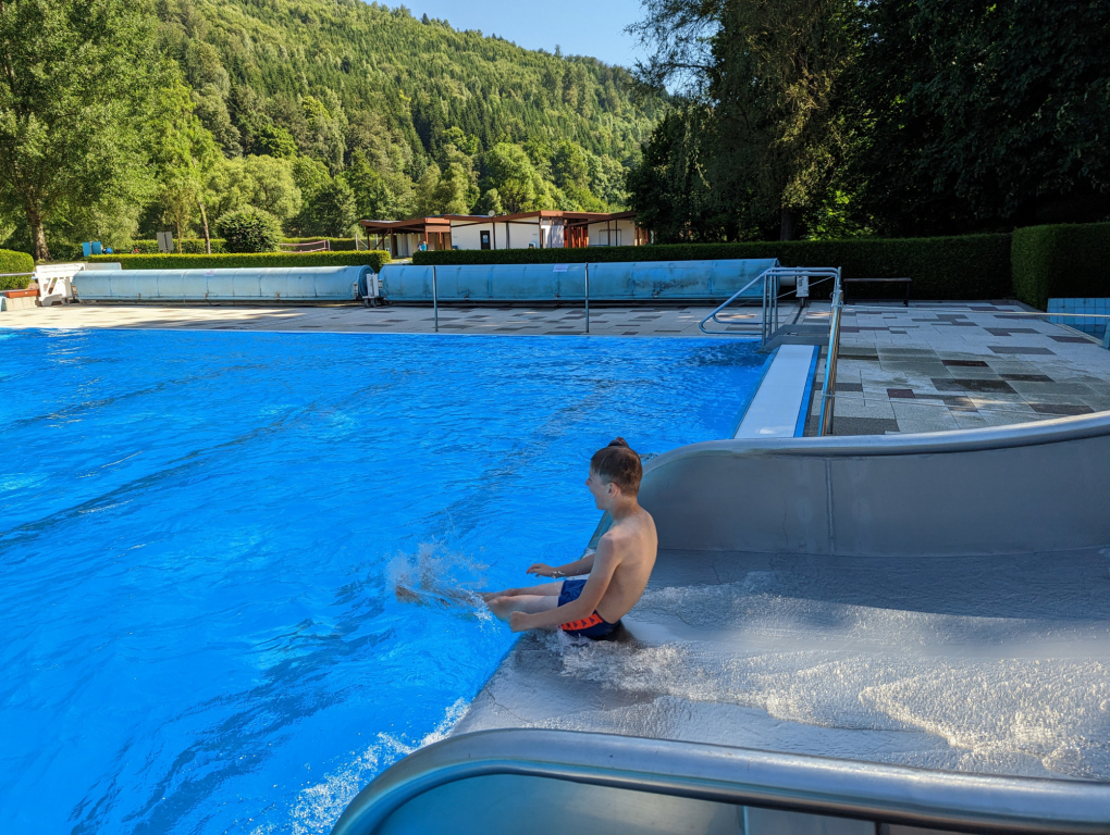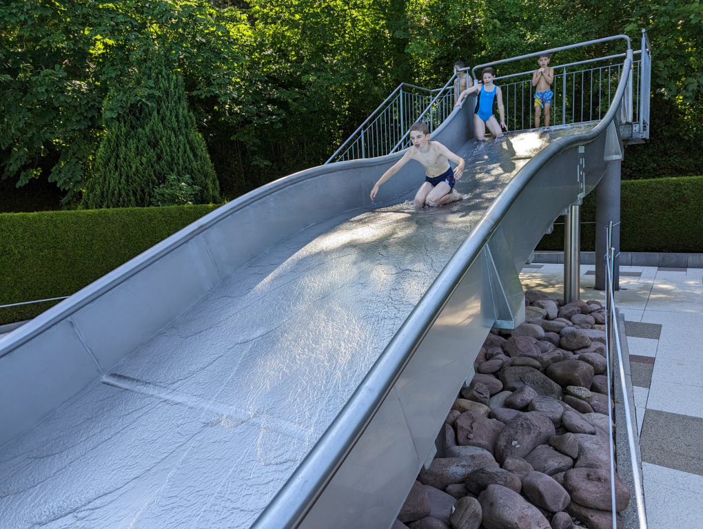 Erst danach durften die Kinder im Wasser oder auf der Wiese machen was sie wollten. Einige spielten Volleyball, andere Schach, wieder andere stürmten die Rutsche bzw. die Sprungbretter und ein paar machten einfach nur Pause.