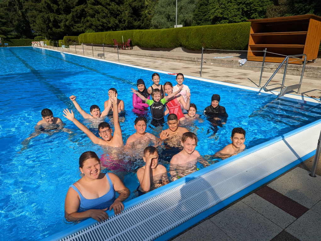 Auch die 5. KLasse der Hauptschule verbrachte einen Vormittag im Freibad, um ihre Schwimmabzeichen  zu absolvieren.