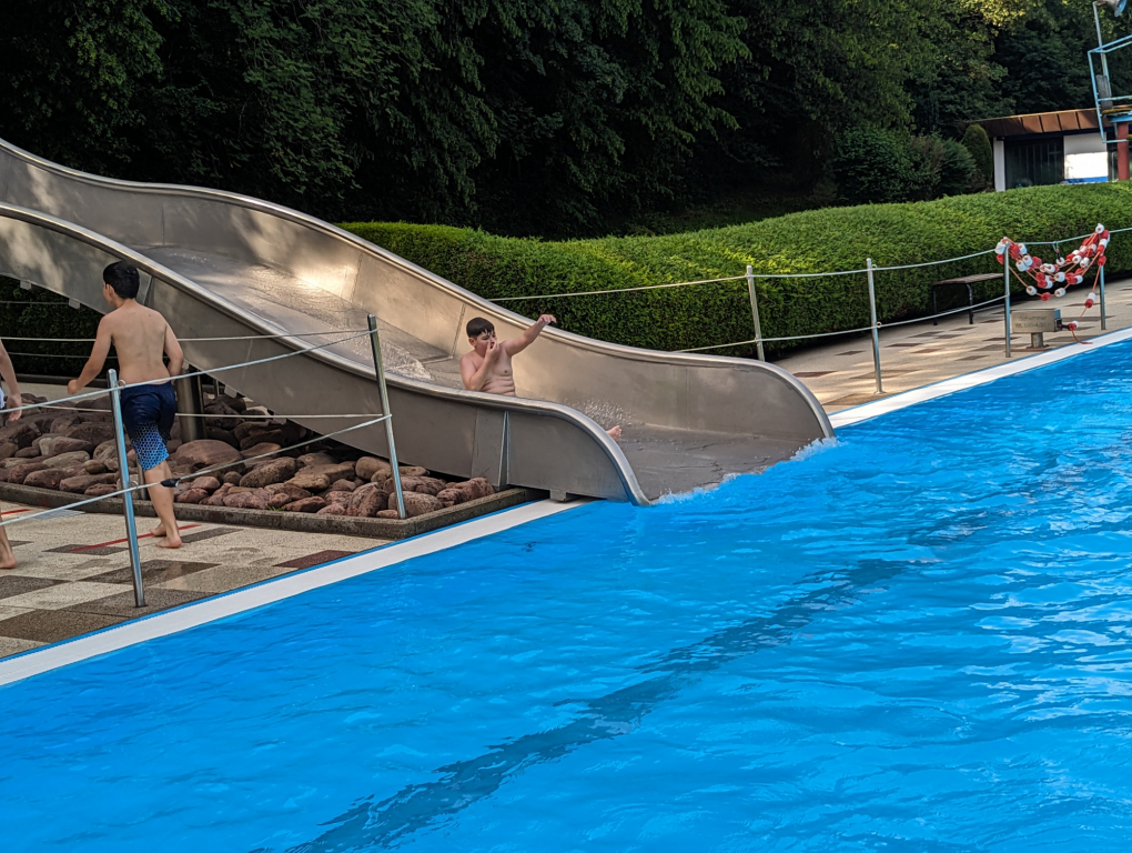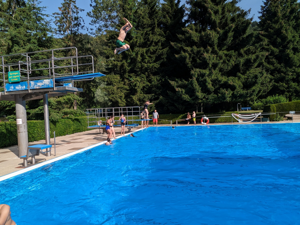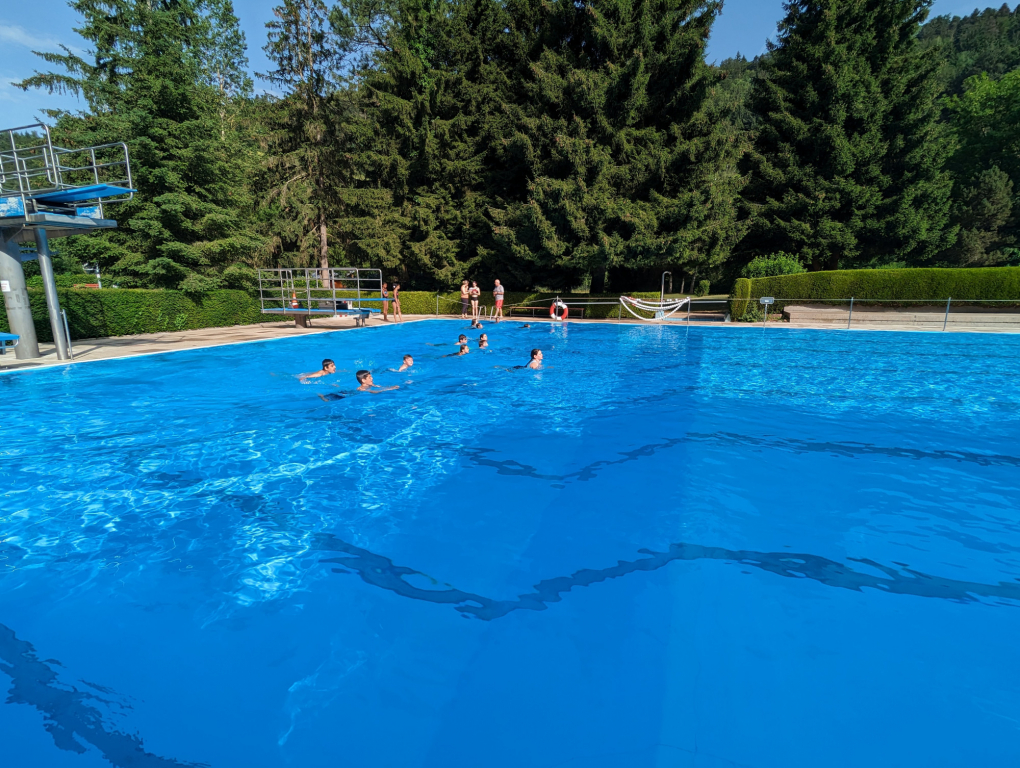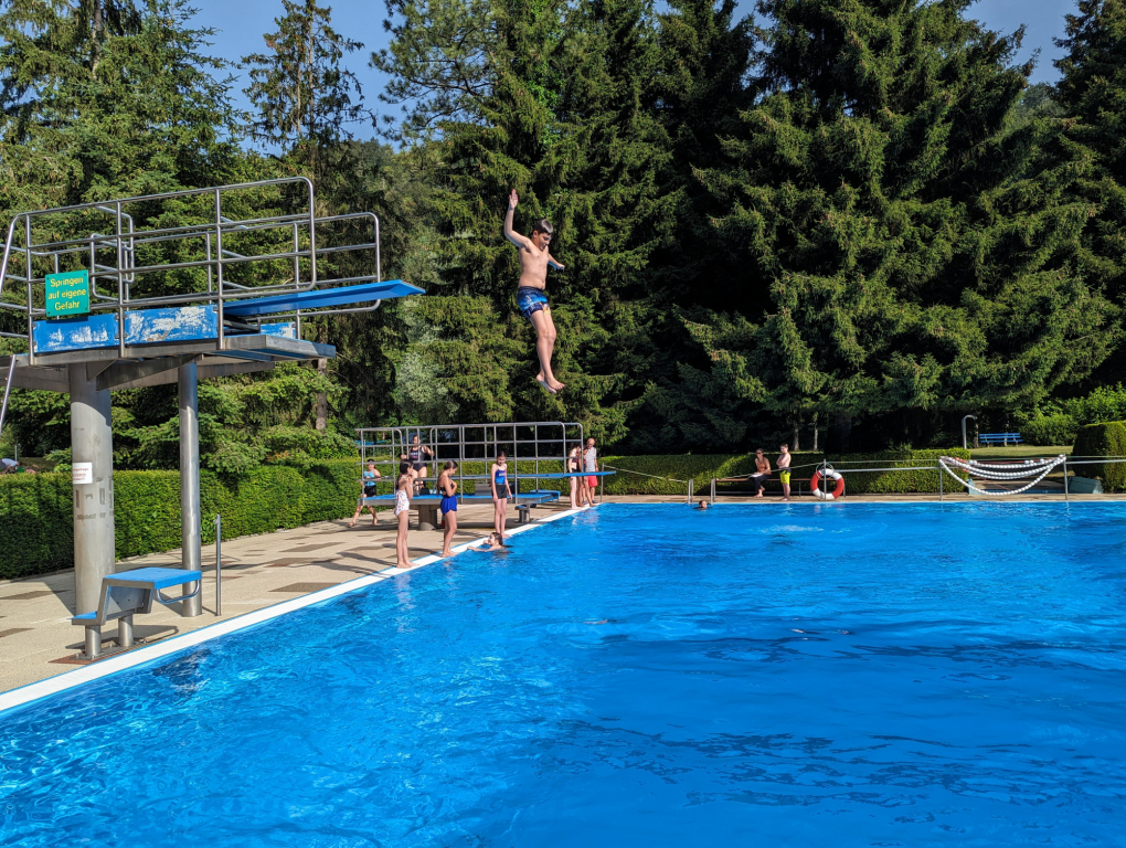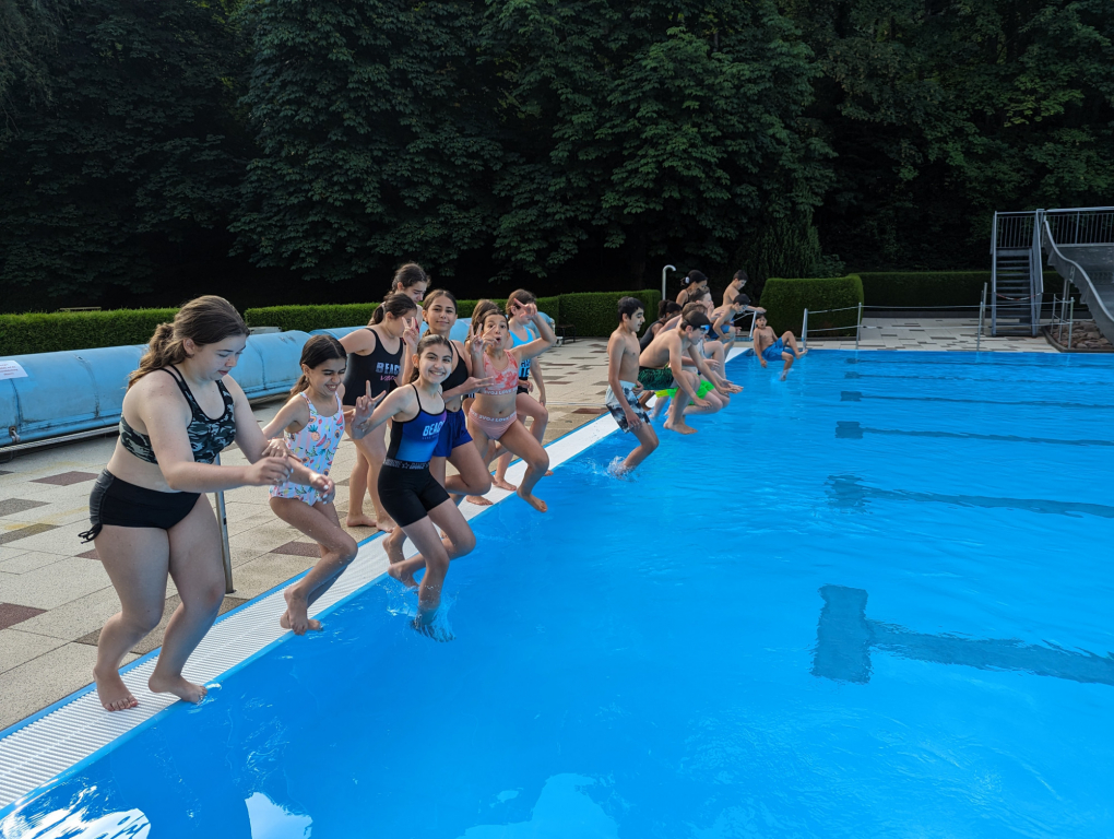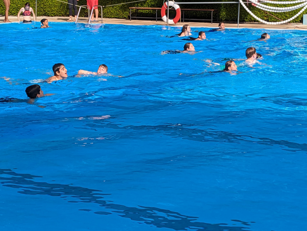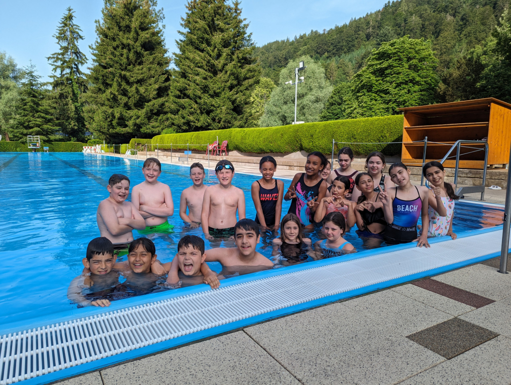 Dieses Mal hat niemand gefroren bei der Schwimmabzeichen-Abnahme. Es war so heiß, dass selbst die Lehrkräfte einen kurzen Sprung ins Wasser wagten und die Kinder am Ende kaum aus dem Wasser zu kriegen waren.