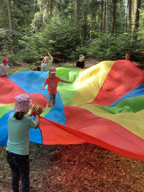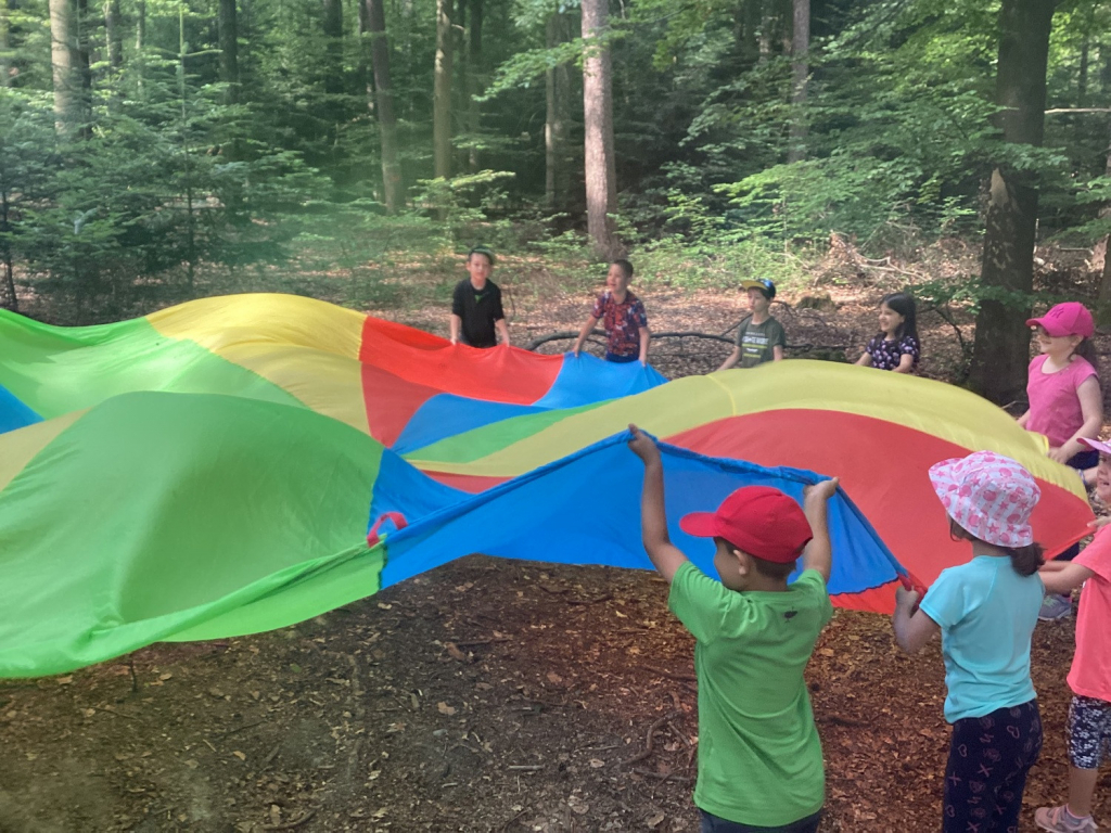 Am Donnerstag, den 29.06.2023 besuchten wir mit unserer Försterin Frau Kienzle den Wald zum Thema „Unsere Wiese und ihre Bewohner“. Nachdem wir zunächst Waldtiere suchten, tolle Waldspiele kennenlernten und eine Schmetterlingswiese mit Naturmaterialien gestalteten, konnten wir am Schluss im freien Spiel noch tolle Tipis bauen. Vielen Dank für diesen erlebnisreichen Waldtag!