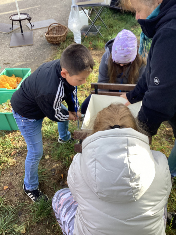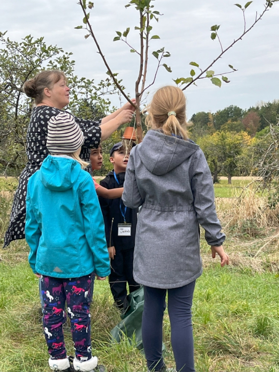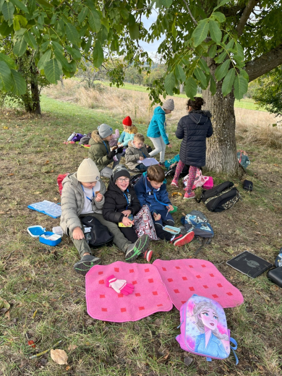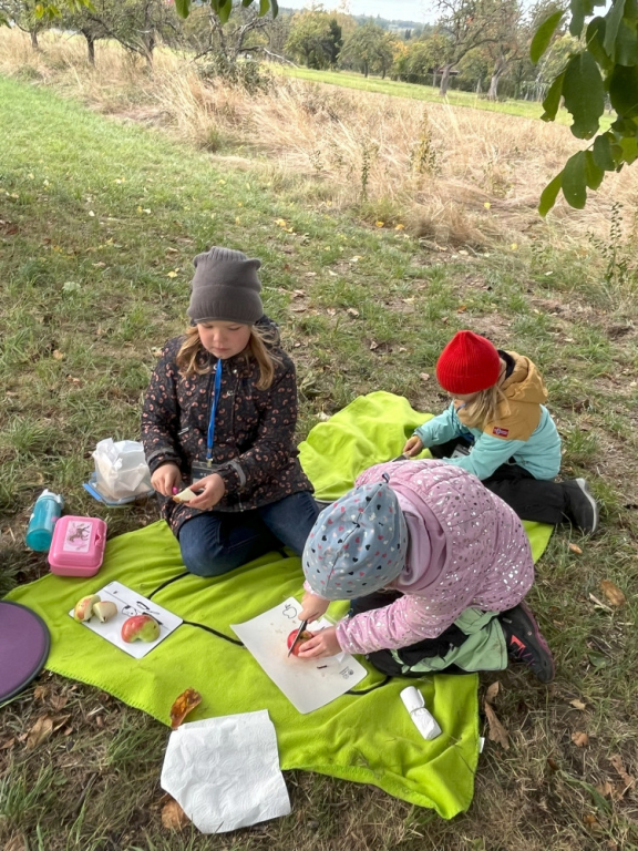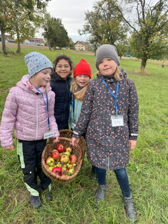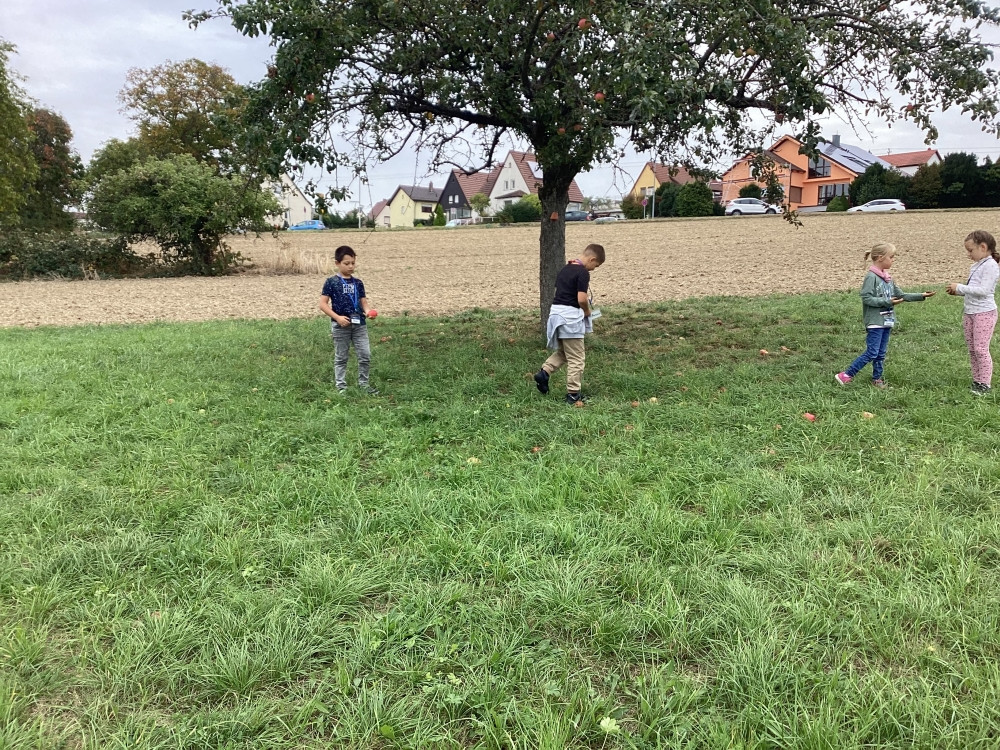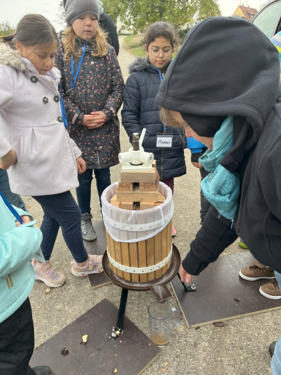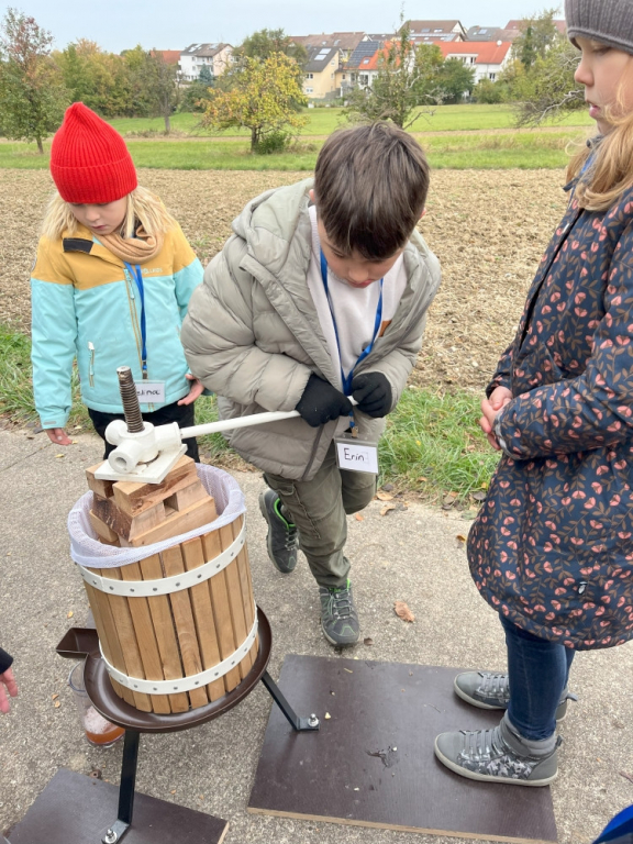 Auch in diesem Jahr gibt es natürlich wieder unser beliebtes Streuobstwiesenprojekt. Bei der Naturpädagogin Frau Raus können unsere Zweitklässler eine Streuobstwiese im Jahresverlauf beobachten, erfahren, genießen. Die beiden ersten Besuche fanden bereits statt und selbst gemachten Apfelsaft gab es auch.