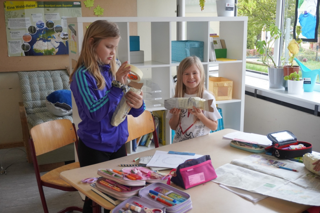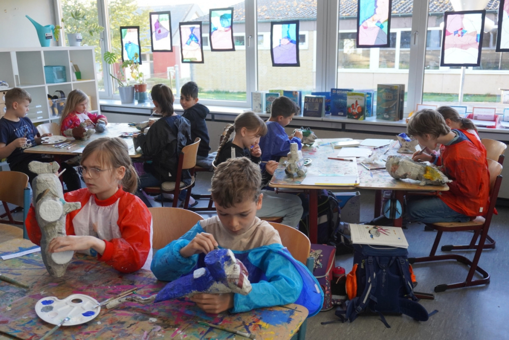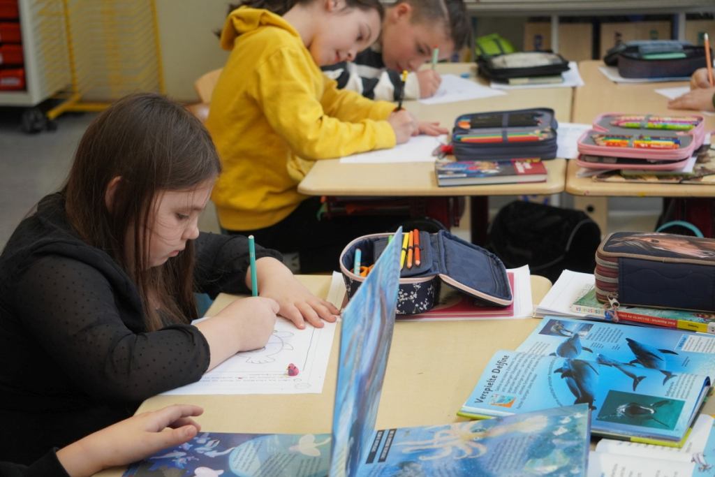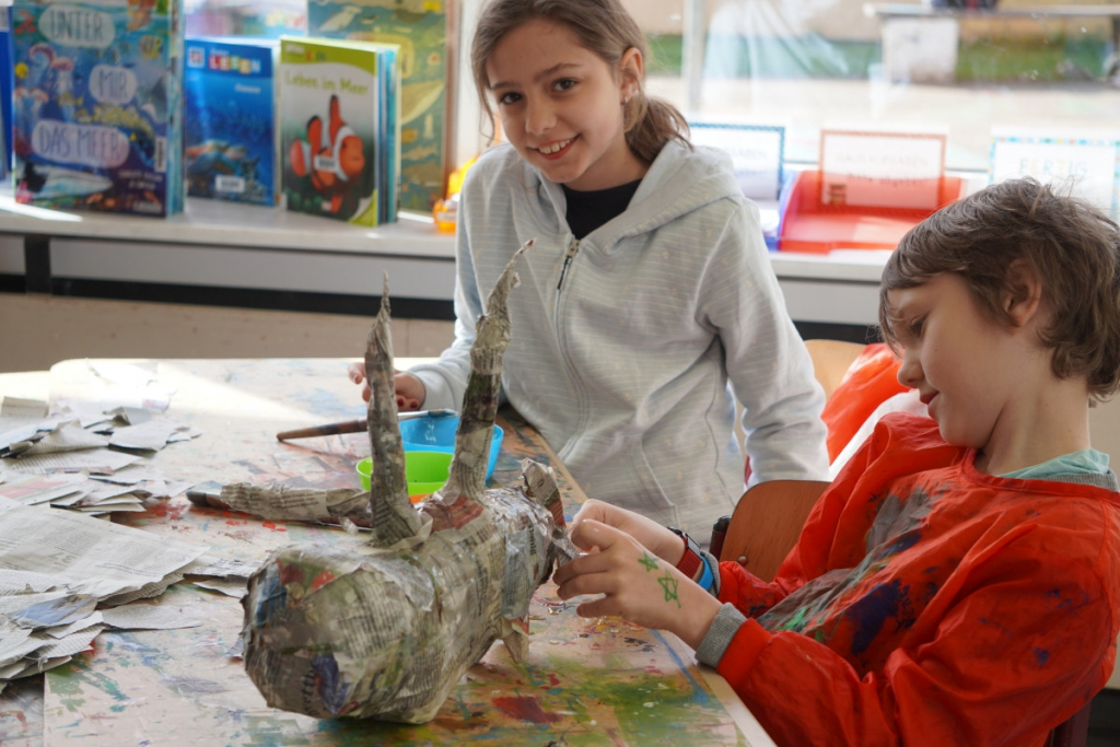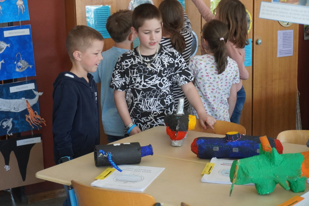 Die Kinder der Klasse 3a begaben sich auf ein Abenteuer in, über und unter den Meeren: Sie begleiteten Kapitän Nemo, Professor Aronnax und dessen Assistenten Ned Land auf ihrer abenteuerlichen Reise „20.000 Meilen unter dem Meer“. Der Literaturklassiker von Jules Vernes weckte ihre Leselust und war Anlass, um sich aus der Literatur hinaus kreativ mit Meereswissen und Meeresschutz auseinanderzusetzen.
