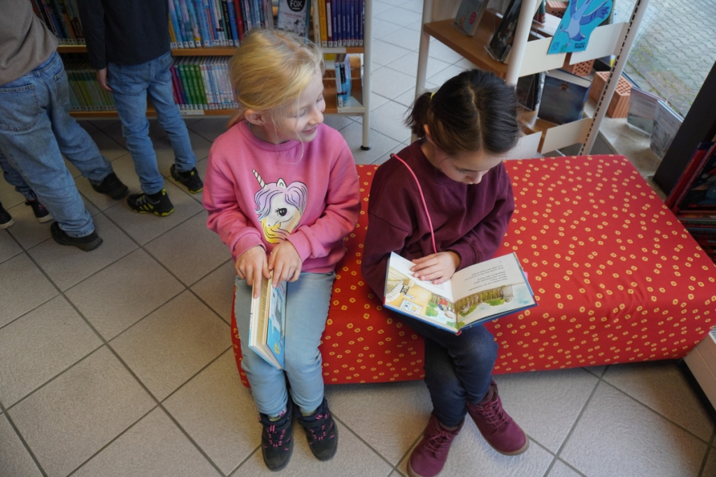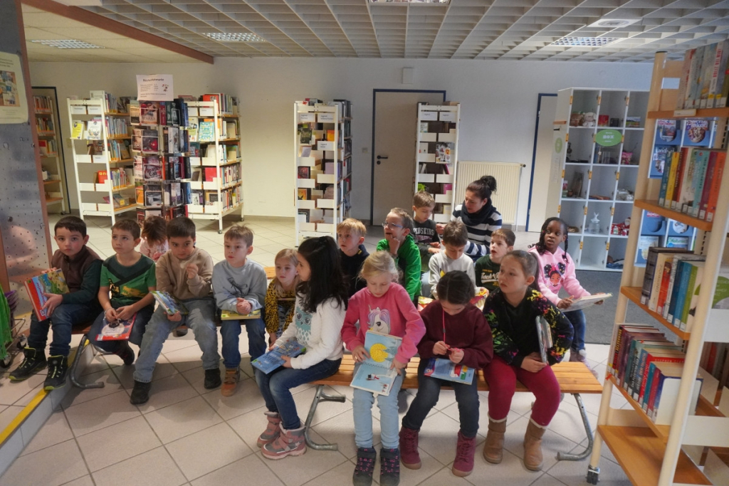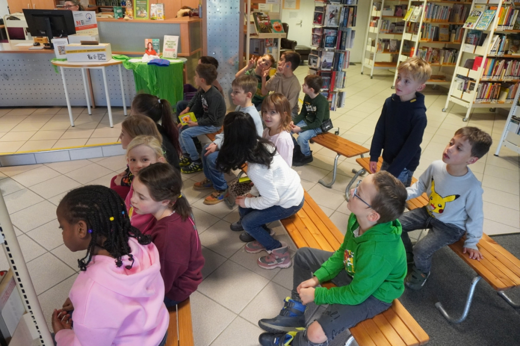 Bücherei: Die Klasse 1b entdeckt die Welt der Bücher