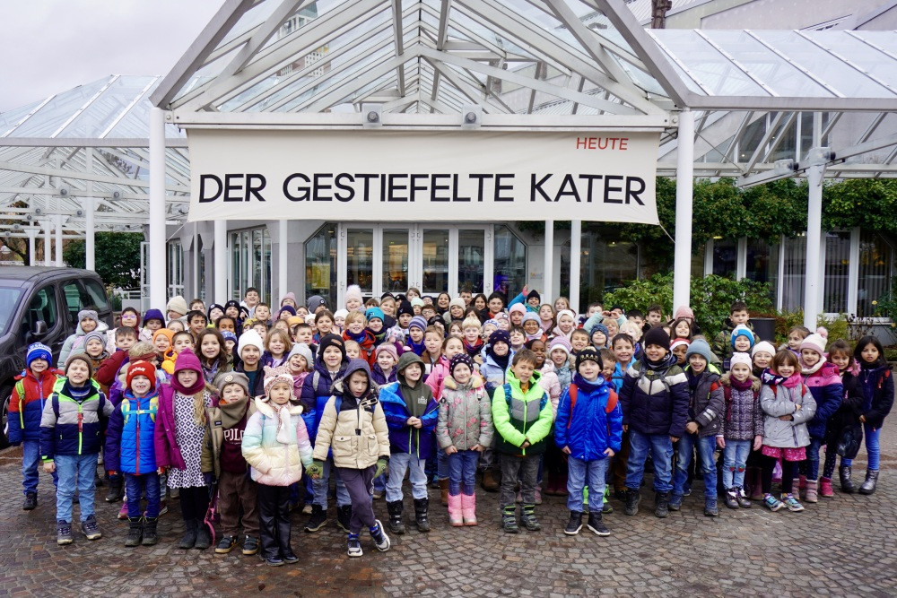 Wer kennt sie nicht, die Geschichte vom sprechenden und gewitzten Kater, der einem armen Müllerssohn zum großen Glück verhilft? Eine der berühmtesten Geschichten der Gebrüder Grimm entführte am 10. Dezember im Stadttheater Pforzheim alle Kinder der Grundschule ins Märchenland. Den Kindern gefiel's!