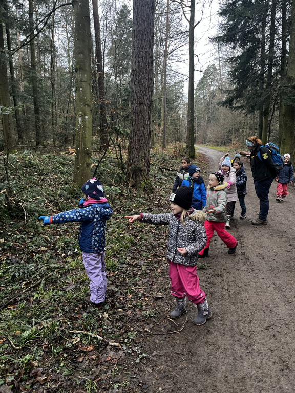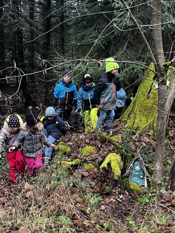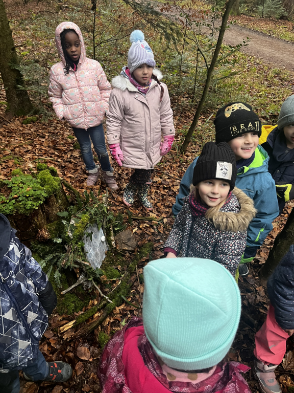 Die Klasse 1b hatte einen aufregenden Tag im Wald! Gemeinsam mit der Försterin Frau Kienzle erkundeten die Kinder den Wichtelweg in Birkenfeld. Auf ihrer Wanderung suchten sie nach Wichtel und funkelnden Sternen, die überall im Wald versteckt waren. Die Kinder waren voller Freude und Entdeckungsdrang, als sie die kleinen, liebevoll gestalteten Wichteltüren entdeckten.