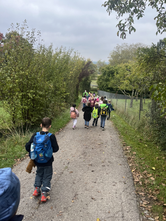 Am vergangenen Dienstag war es endlich soweit: Die ersten und zweiten Klassen unserer Grundschule haben sich voller Vorfreude auf den großen Wandertag gemacht. Gemeinsam ging es direkt los – und schon nach wenigen Minuten führte uns ein kleiner Umweg auf spannende, unbekannte Wege. Das Wetter spielte wunderbar mit – die Sonne schien und die Kinder waren bester Laune.