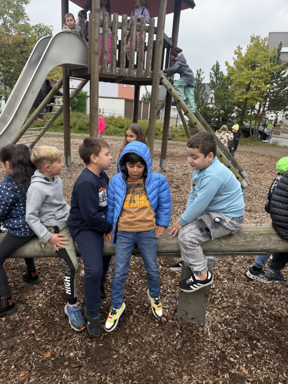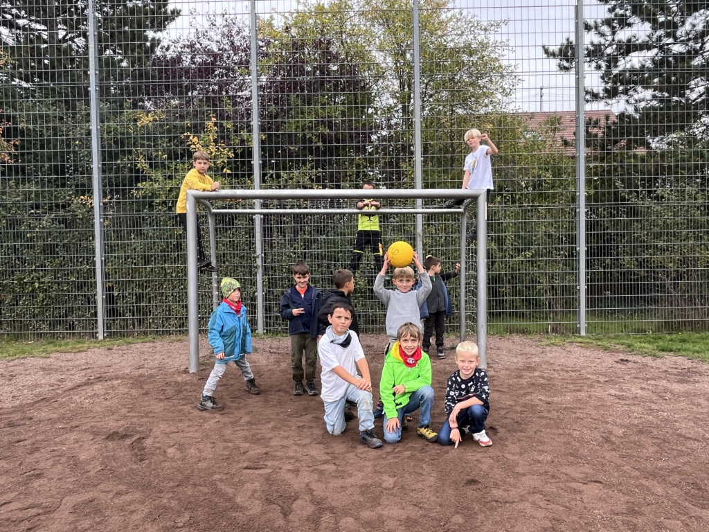 Das Ziel unseres Ausflugs war der Sonnenspielplatz. Dort herrschte sofort buntes Treiben: Einige Jungen stürmten den Fußballplatz, andere Kinder eroberten die Klettergeräte, flitzten die Rutschen hinunter oder übten gemeinsam eine kleine Zirkusaufführung ein.