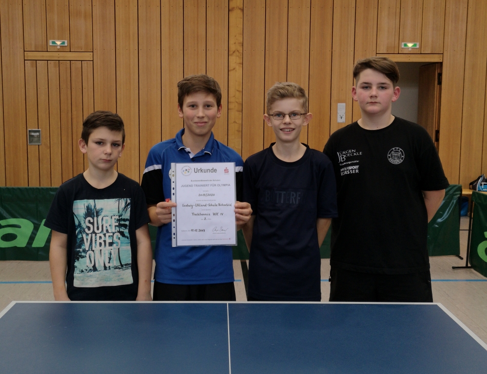 Auch dieses Jahr trat die Ludwig-Uhland Schule beim Wettbewerb "Jugend trainiert für Olympia" in der Kategorie Tischtennis an. Jugendbetreuer Oliver Sierpek schickte am 12. Dezember vier Spieler seiner Tischtennis-AG zum Wettkampf, darunter Tim Nofer, Maximilian Wienicke, Mattis Eisemann und Alessio Chianta. Insgesamt waren drei Mannschaften in der Wettkampfklasse IV am Start. Neben der Ludwig-Uhland-Schule Birkenfeld waren das Keppler-Gymnasium Pforzheim sowie die Ludwig-Uhland Schule Heimsheim (außer Konkurrenz, da sie in einem anderen Wettkampf gemeldet waren) vertreten.