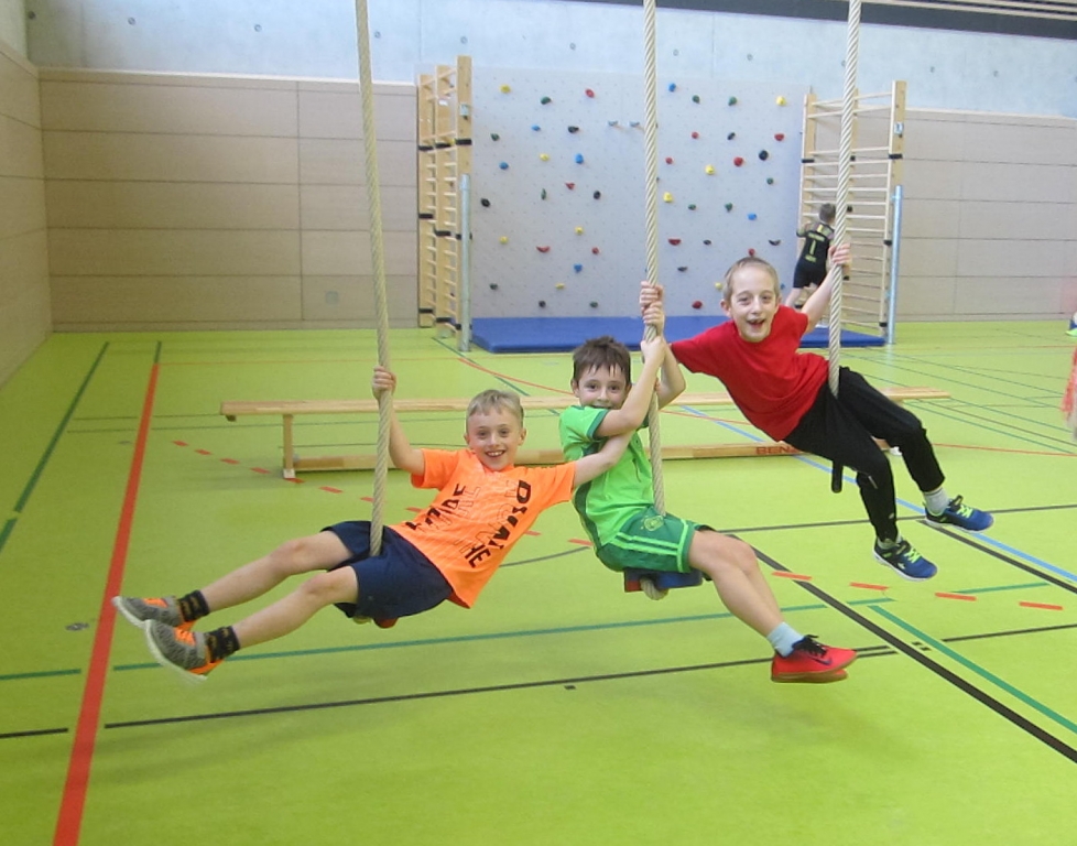 Alle Kinder der Grundschule und die Vorschulkinder des Kindergartens Jahnstraße durften nach Herzenslust eine Schulstunde lang in der Hermann-Gross-Sporthalle an allen Geräten turnen und toben.